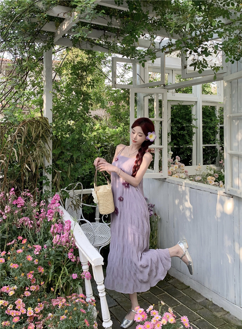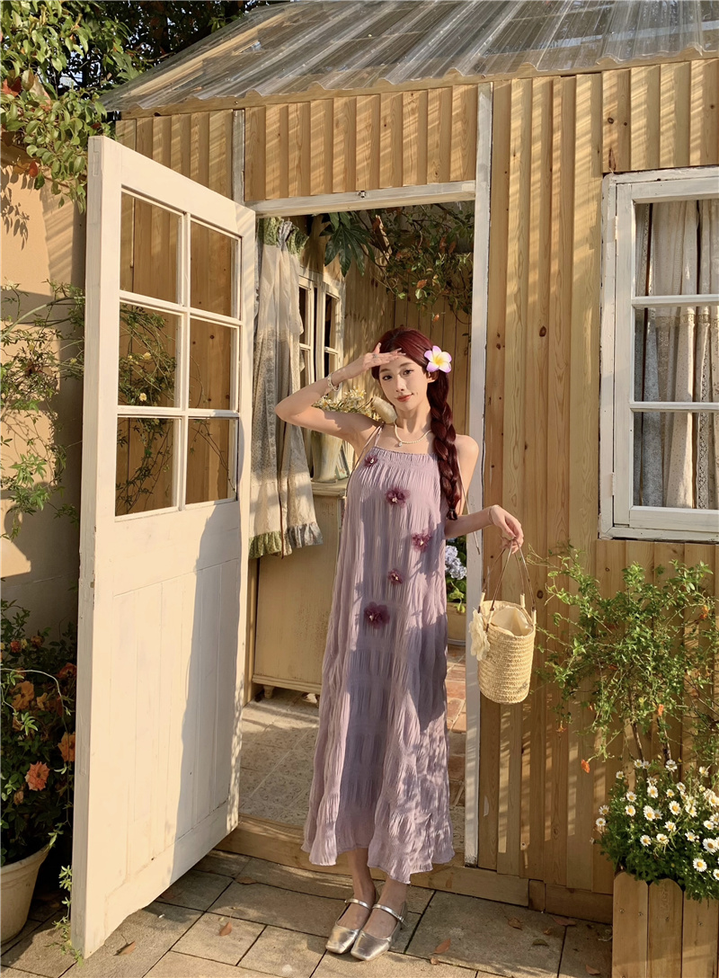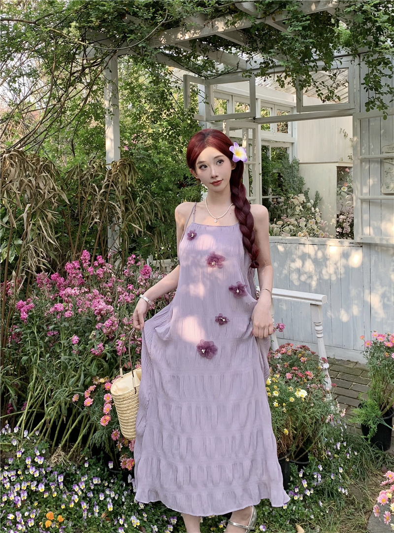 실사 정가 소녀 센스 3 차원 꽃 주름 휴가 바람 슬립 드레스