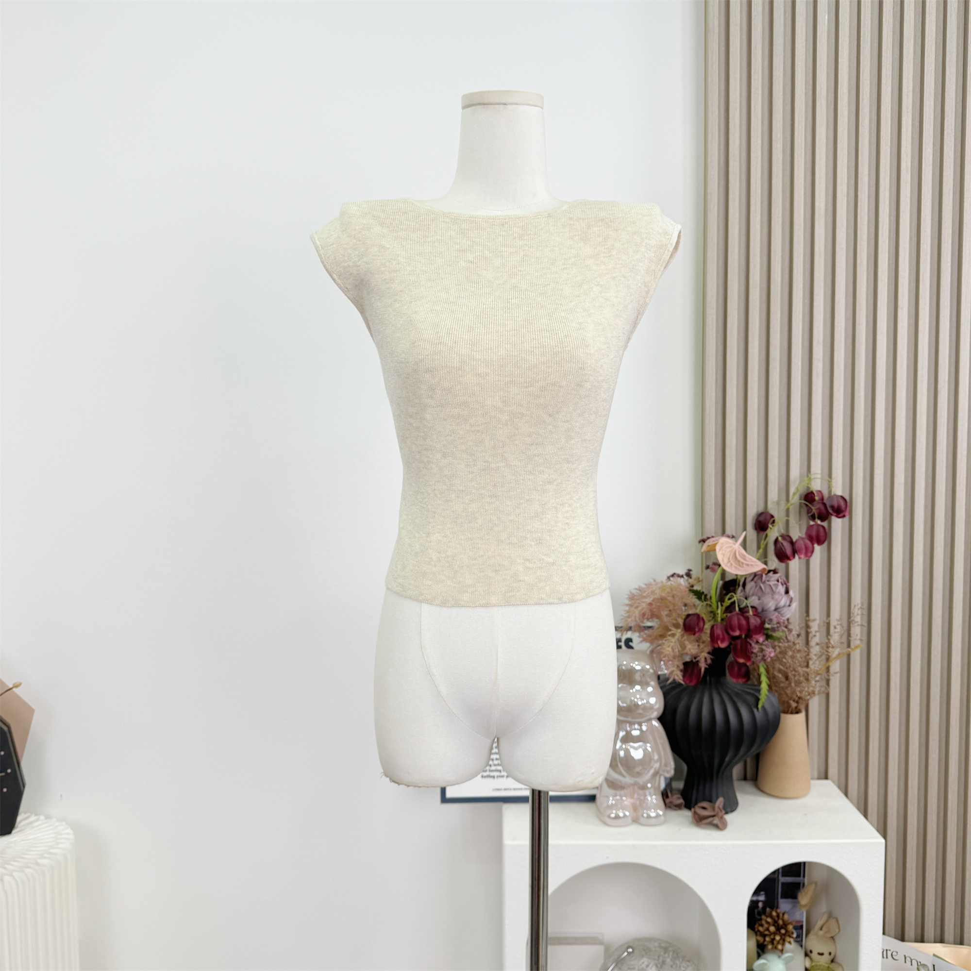 켄 콩 comfy 화이트 여성 품격 알몸의 센스 편안함 기타 색상 입력 몸매 가꾸기 작은 백리스 니트 반팔