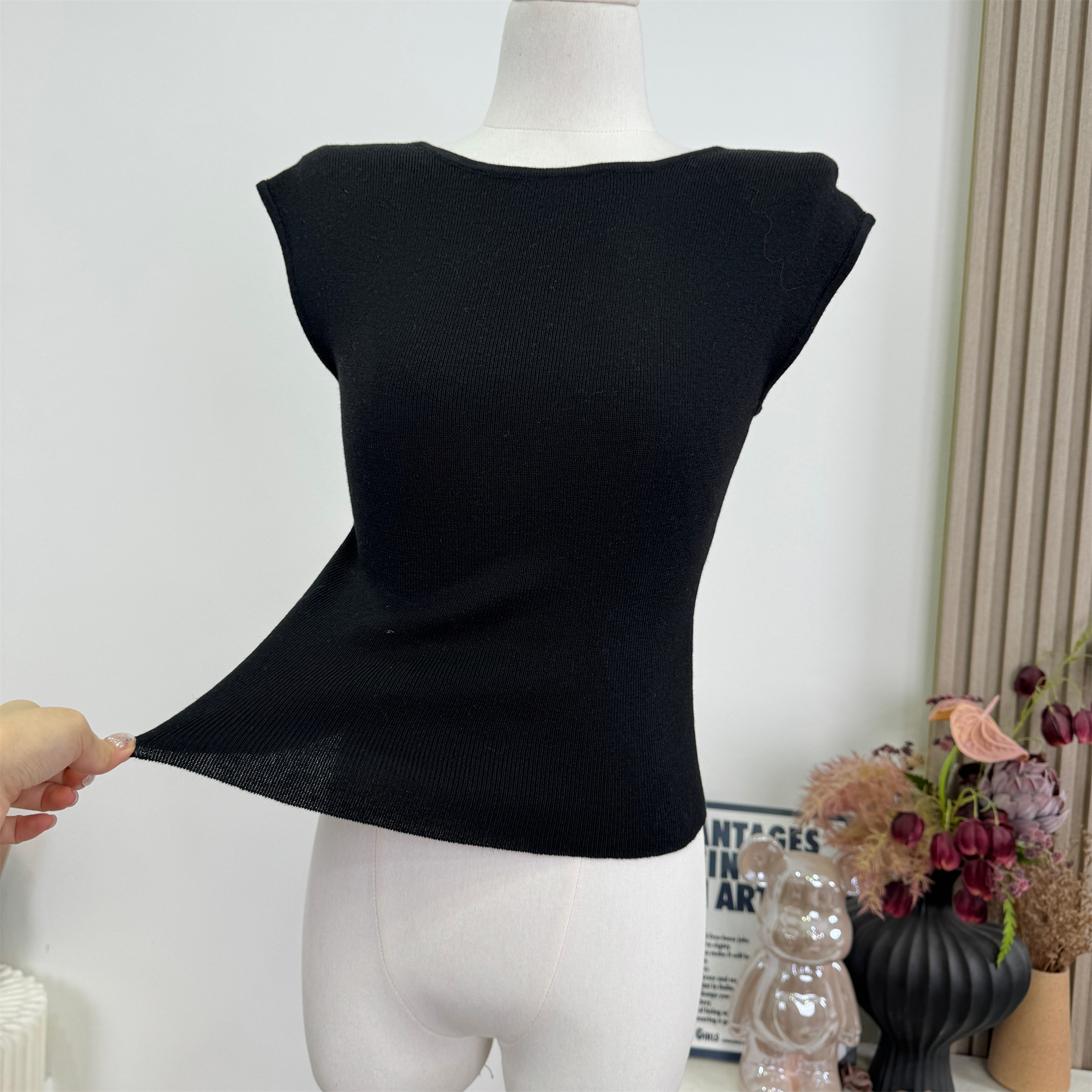 cchen 첸 첸 눈 레몬 아름다움 레이스 레이스 라운드 넥 맨위 여성 여름 민소매 니트 조끼 몸매 가꾸기 반팔