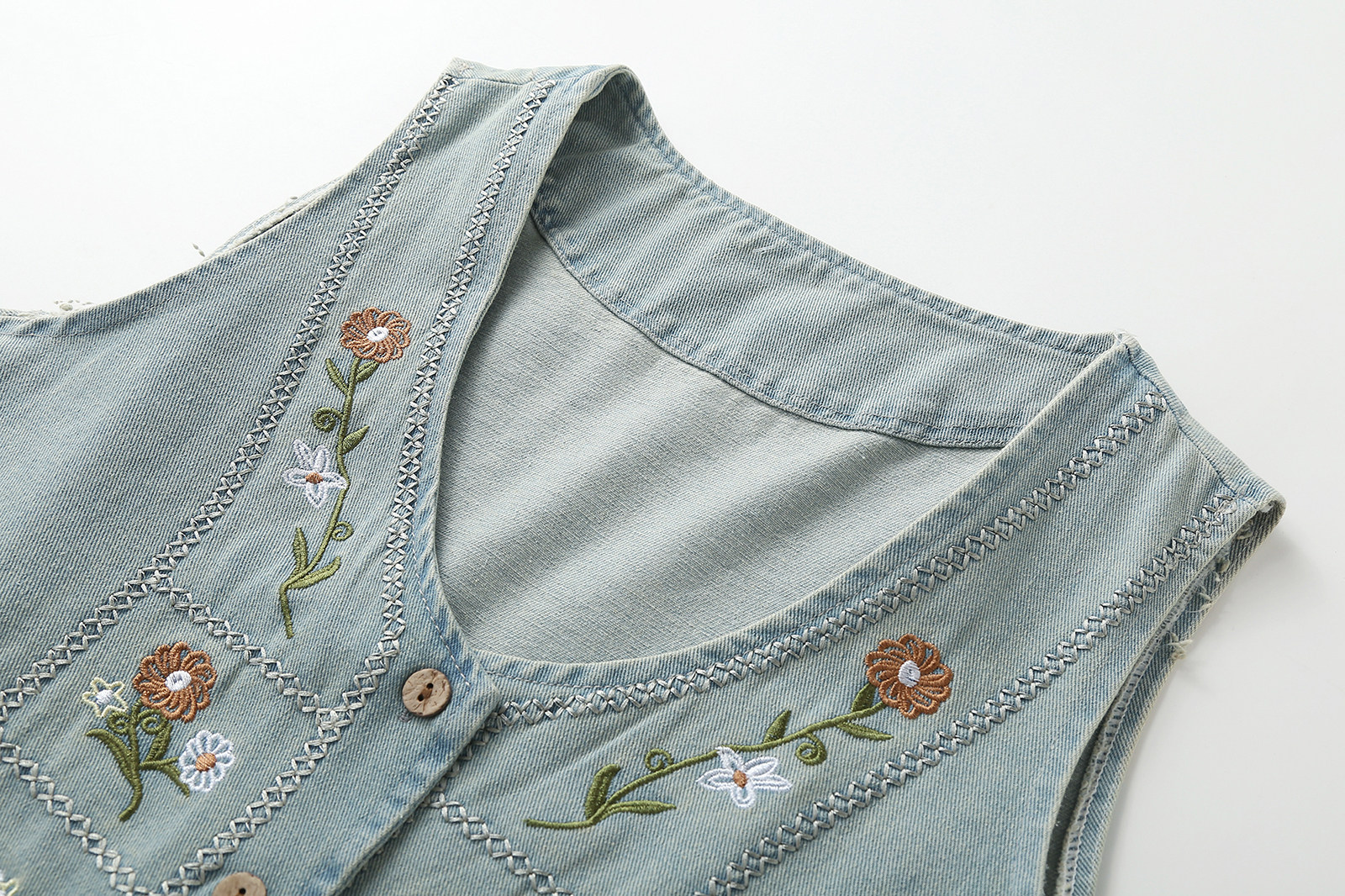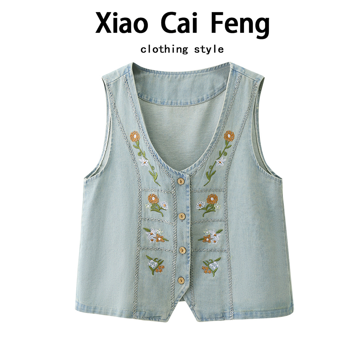 문예 일본식 자수 데님 베스트 조끼 여성 여름 연령 감소 디자인 센스 루즈핏 스택 착용 어깨 짧은 외투 트렌디