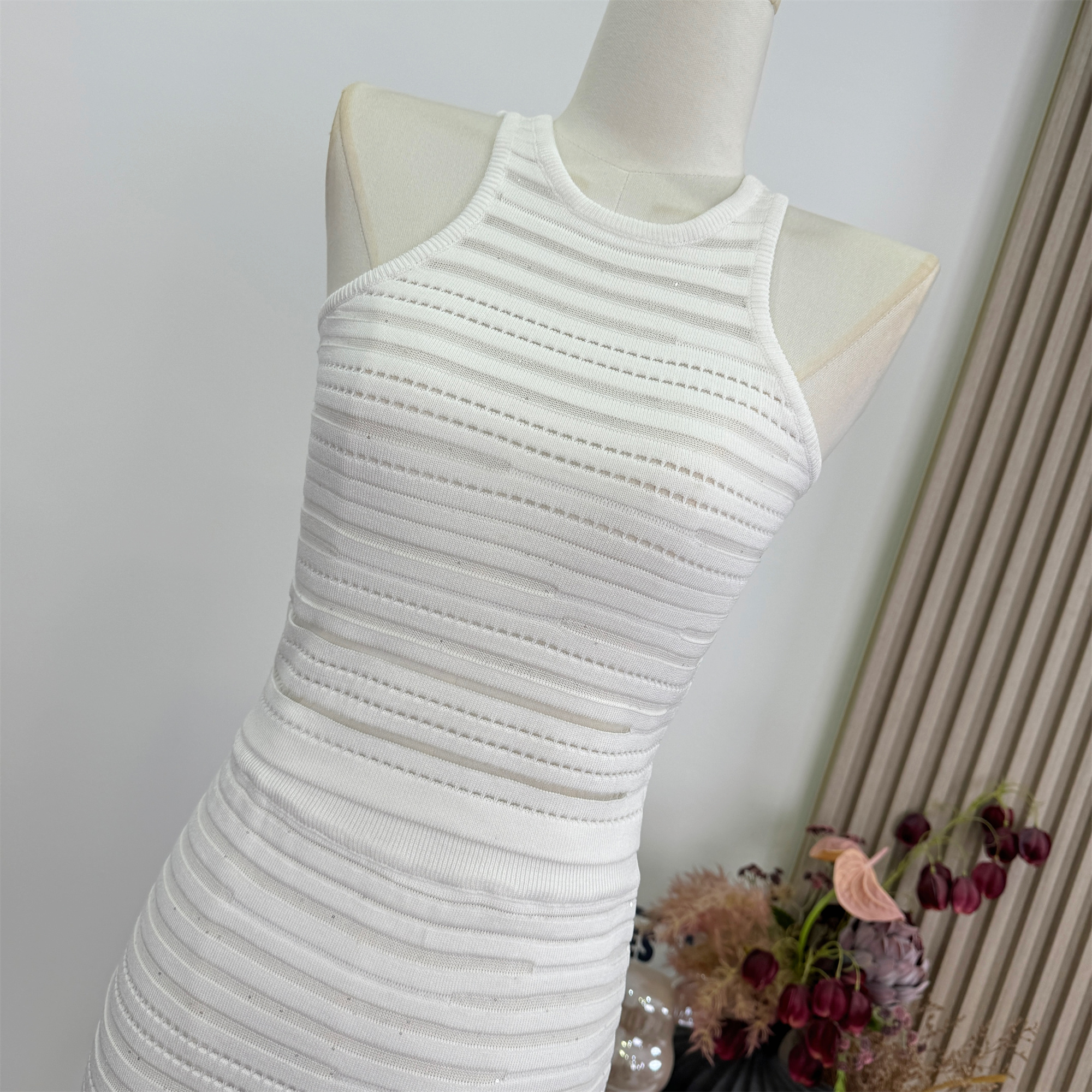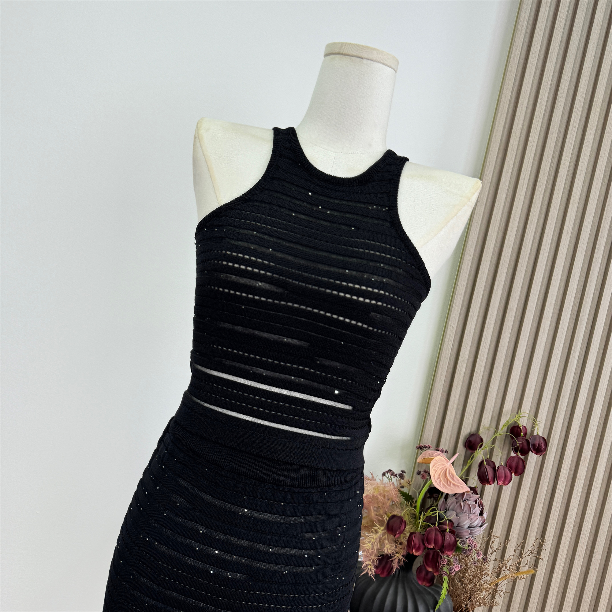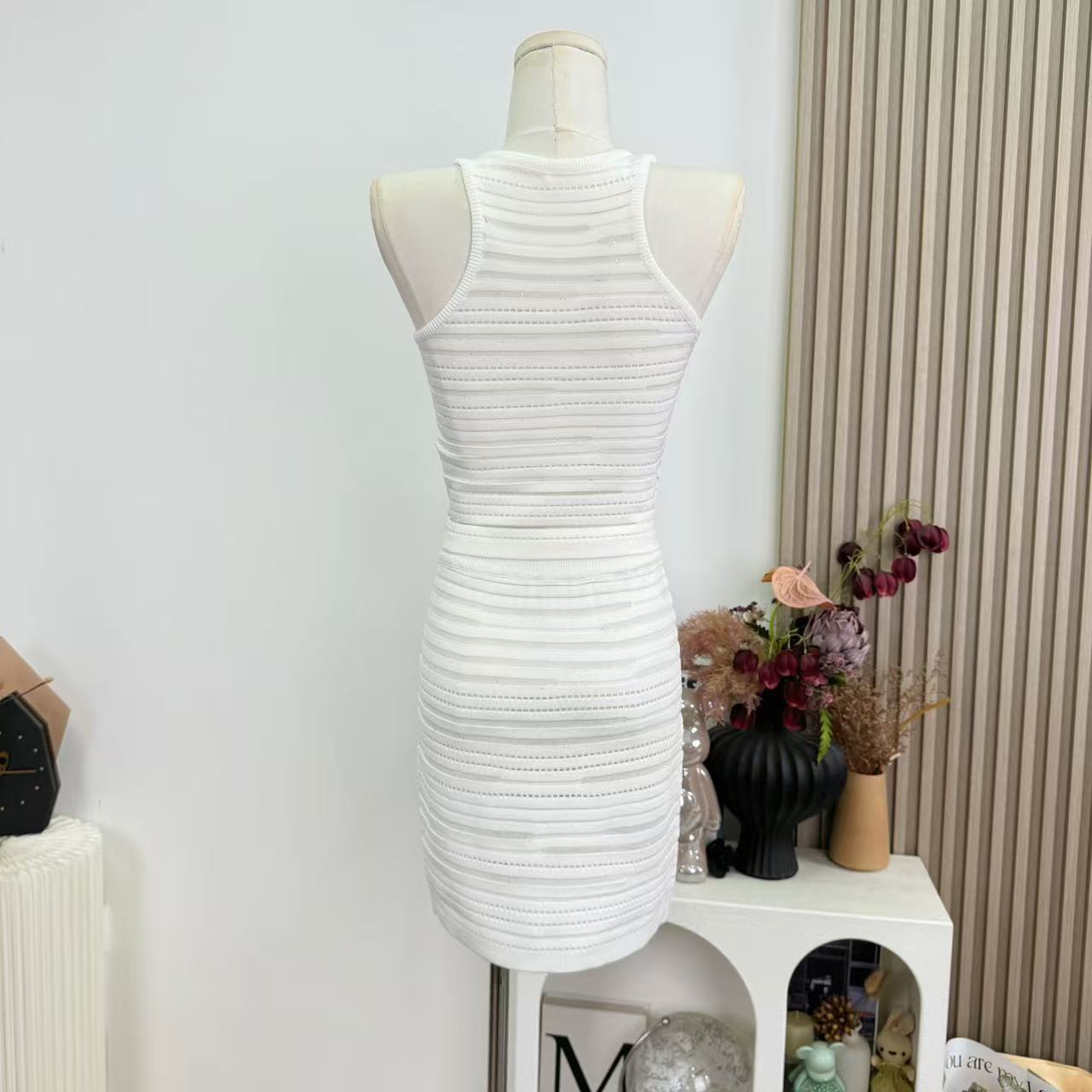 안녕하세요. 팬 팬 sunny girl 배색 끈 백리스 니트 원피스 샤오시엔 스트라이프 조끼