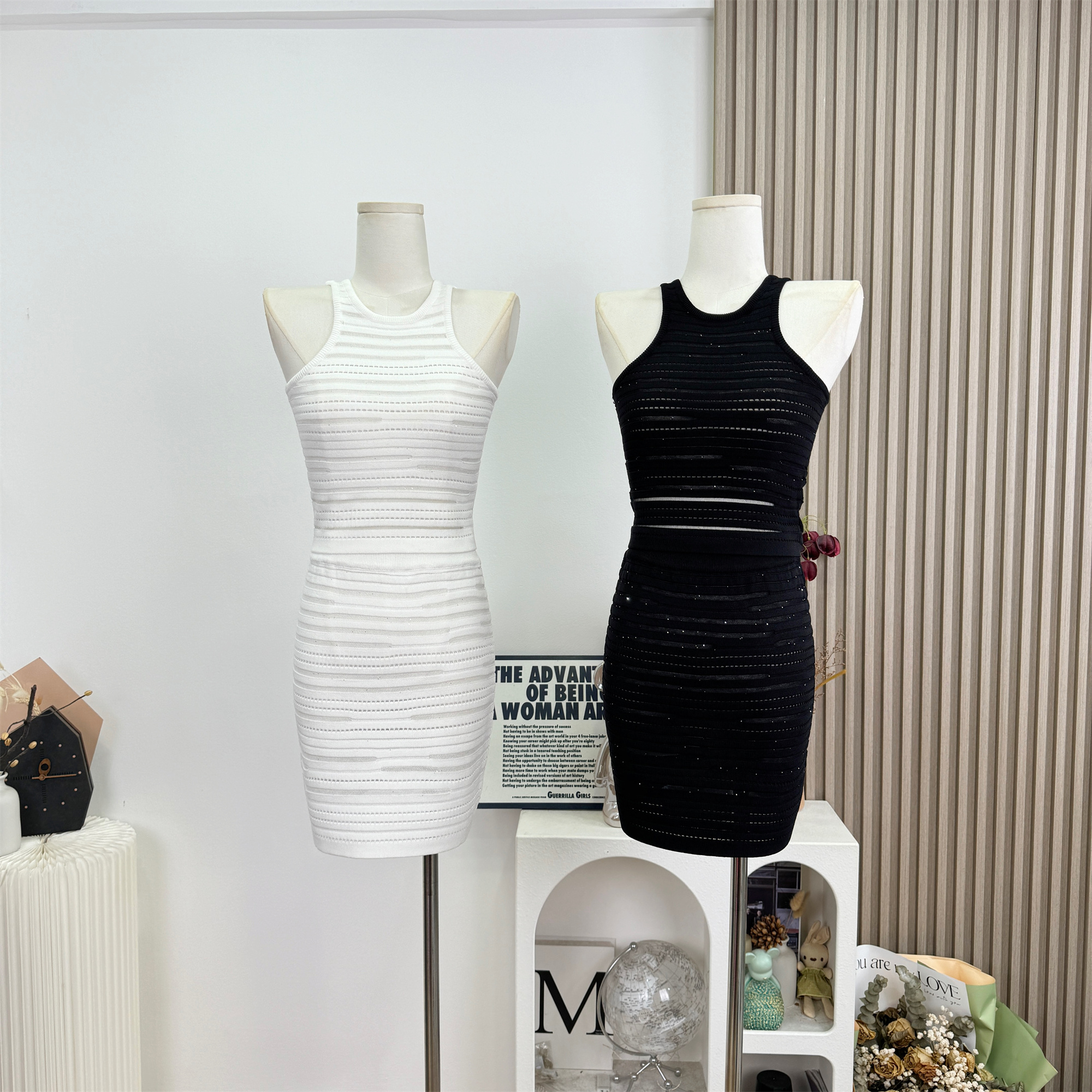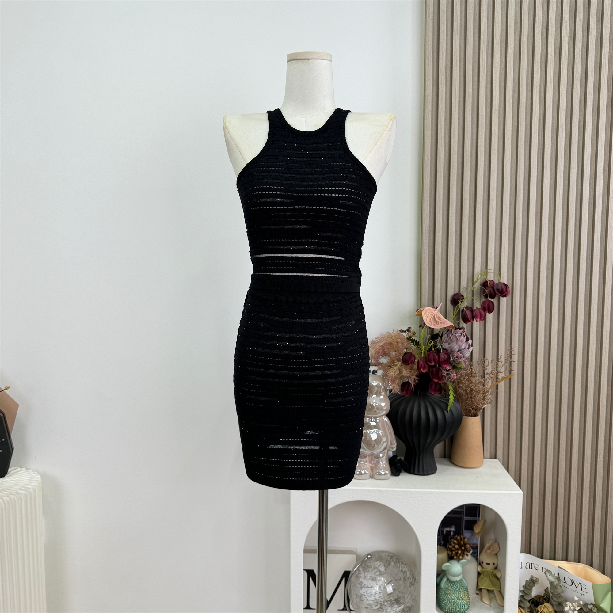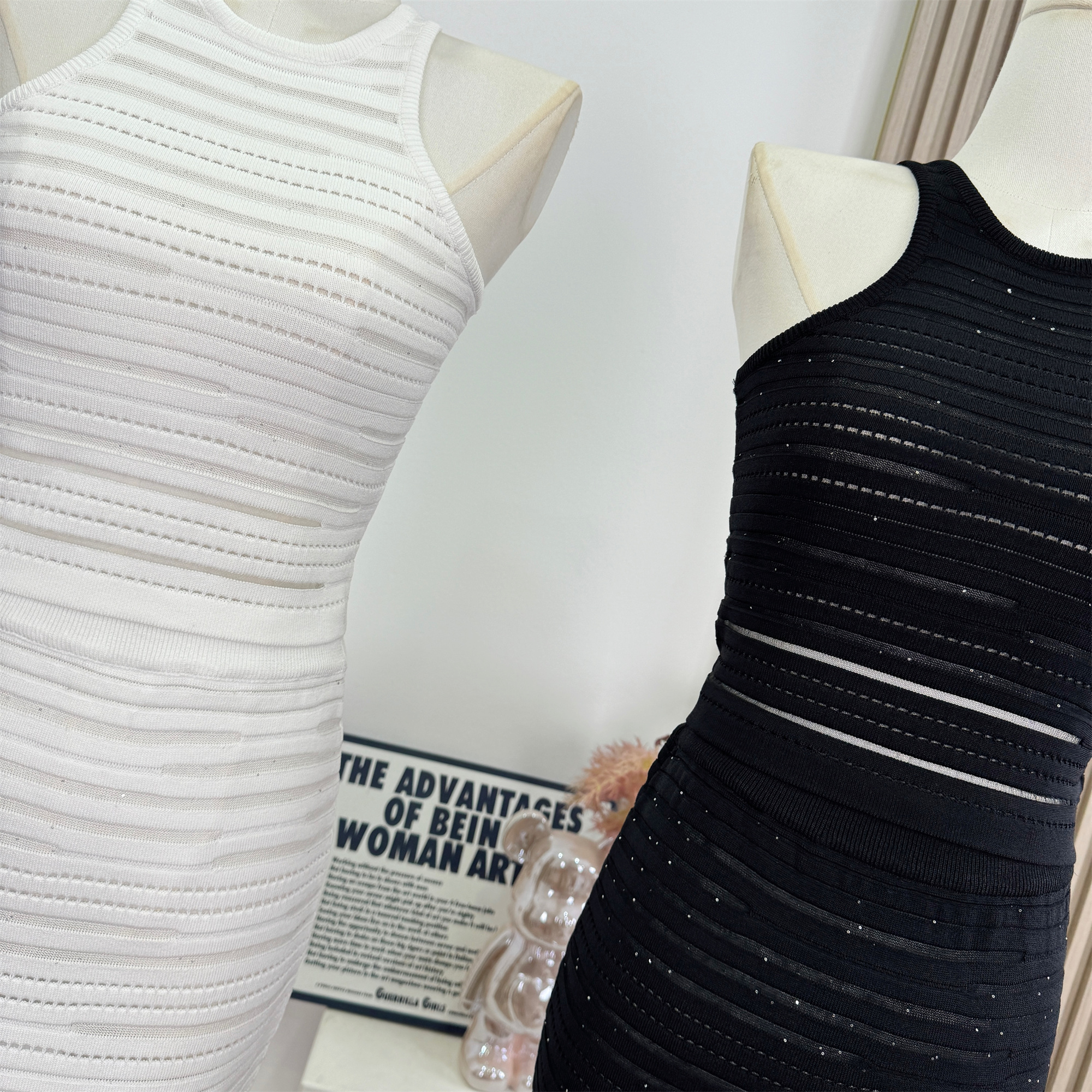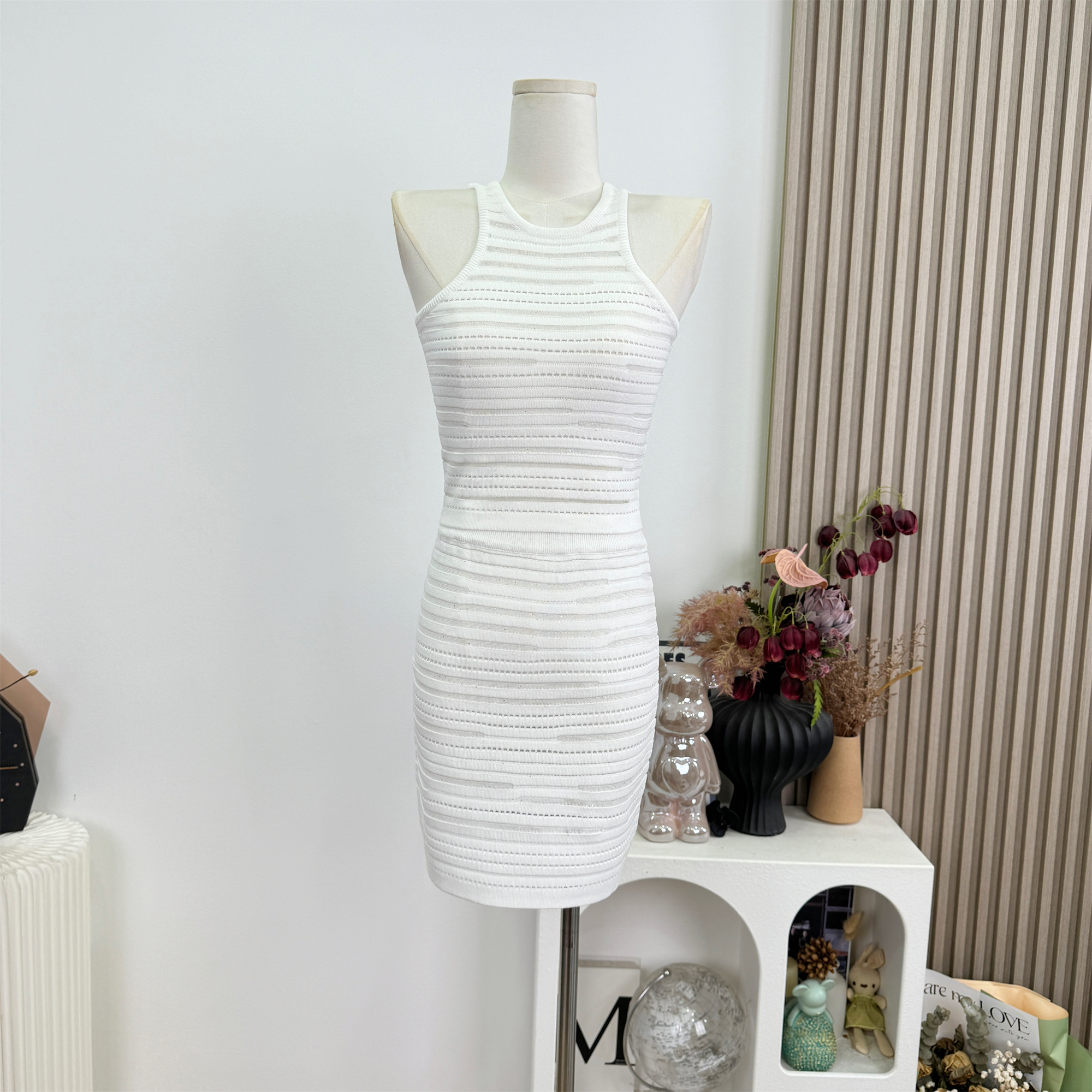 안녕하세요. 팬 팬 sunny girl 배색 끈 백리스 니트 원피스 샤오시엔 스트라이프 조끼