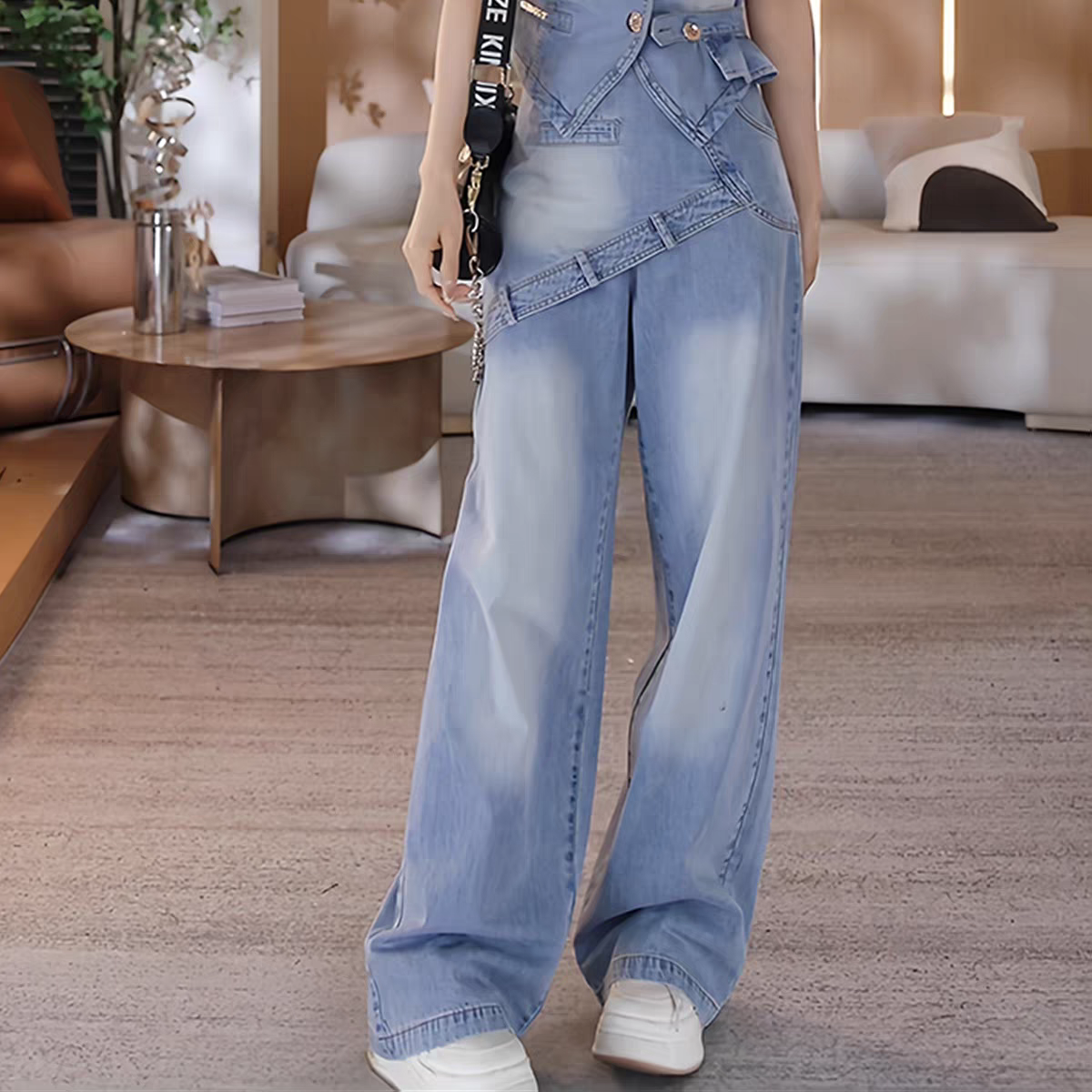 2026 여름 새로운 핫걸 품격 몸매 가꾸기 조끼 맨위 페이크 레이어드 데님 캐주얼 넓은 다리 길이 바지 여성