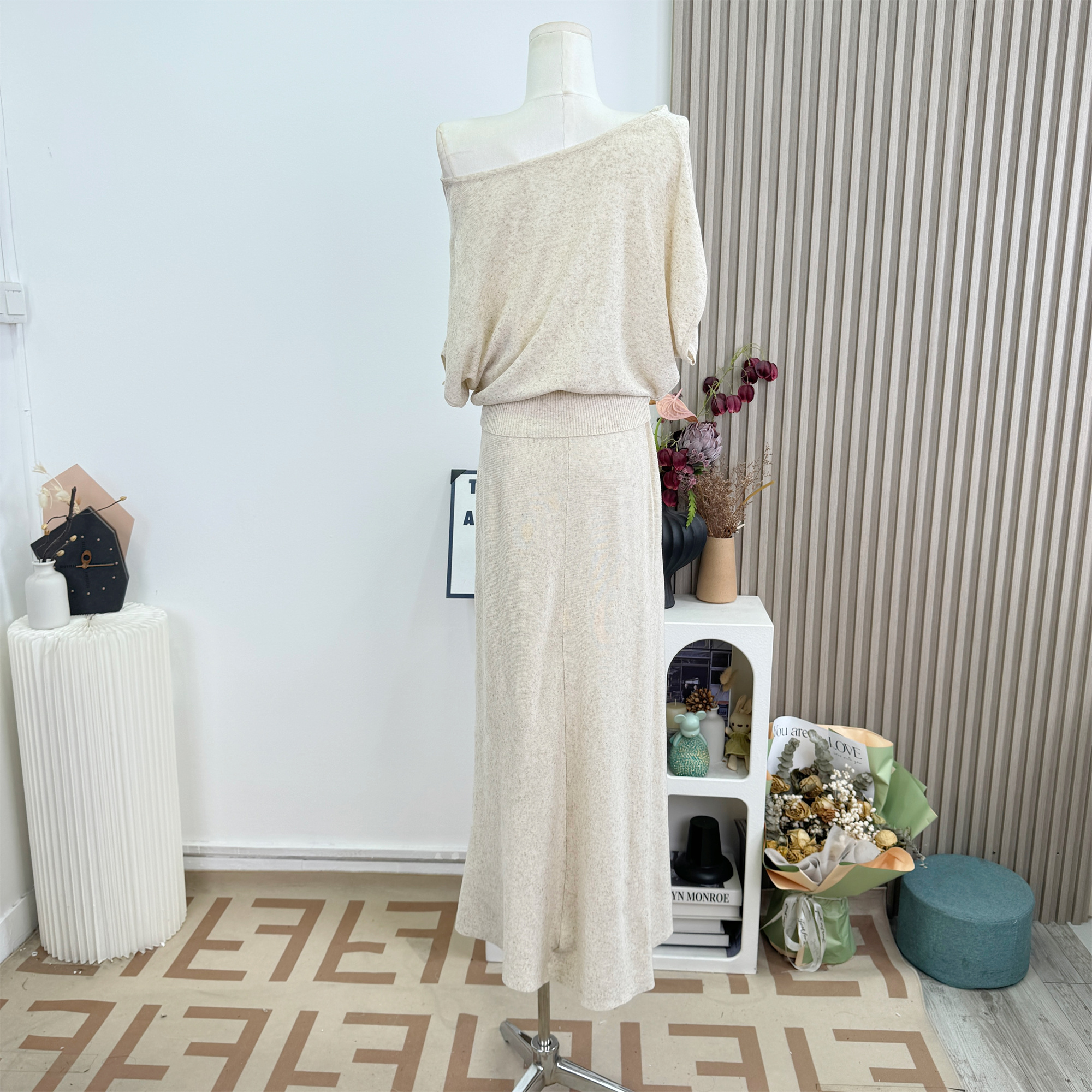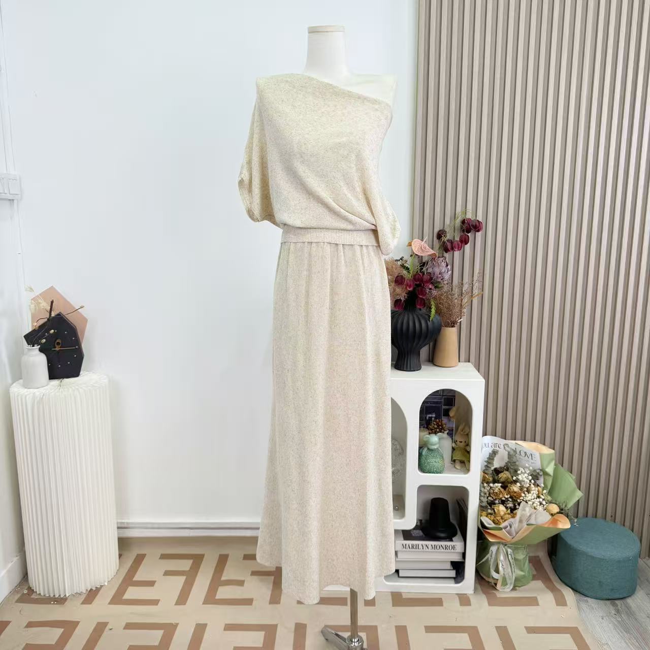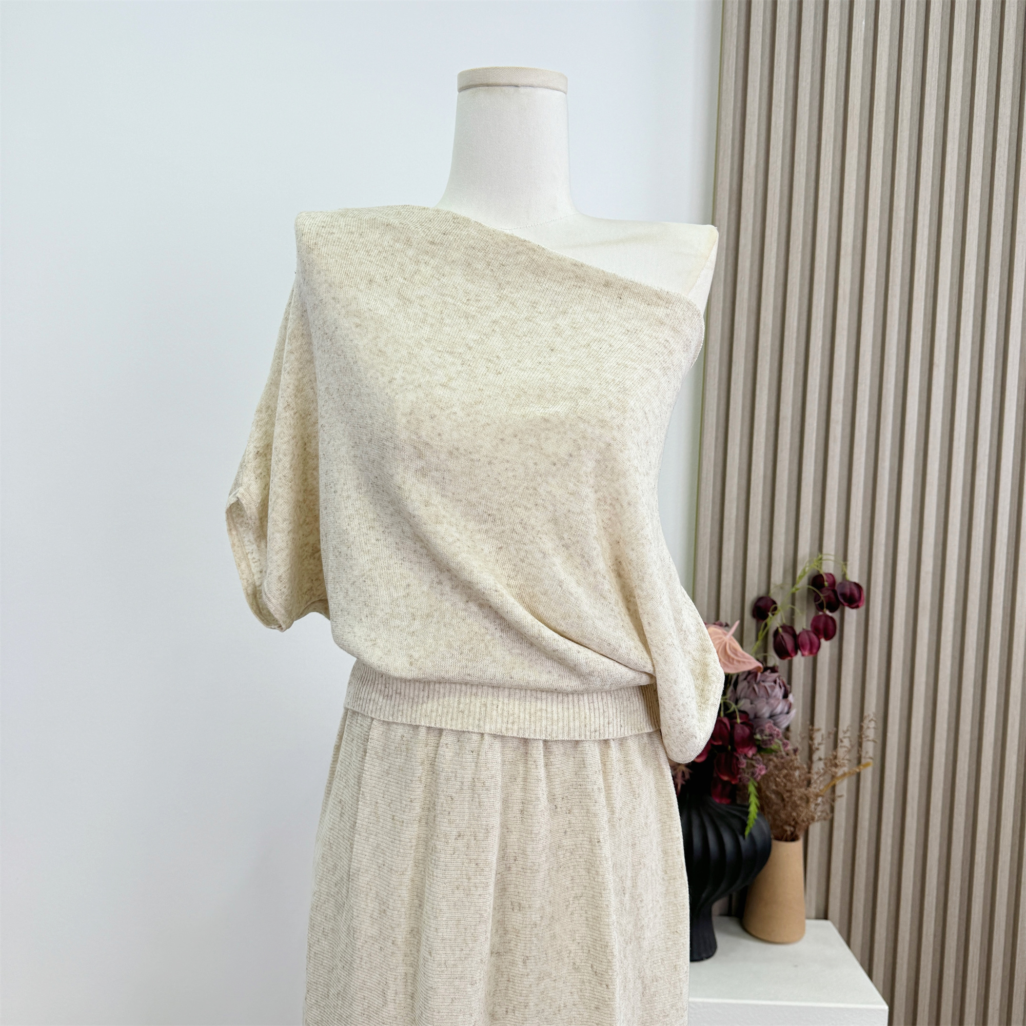 안녕하세요. 팬 팬 감기 흰색 피부 아름다운 품격 뽕나무 누에 실크 양모 혼방 오프숄더 둘 착용 니트 맨위