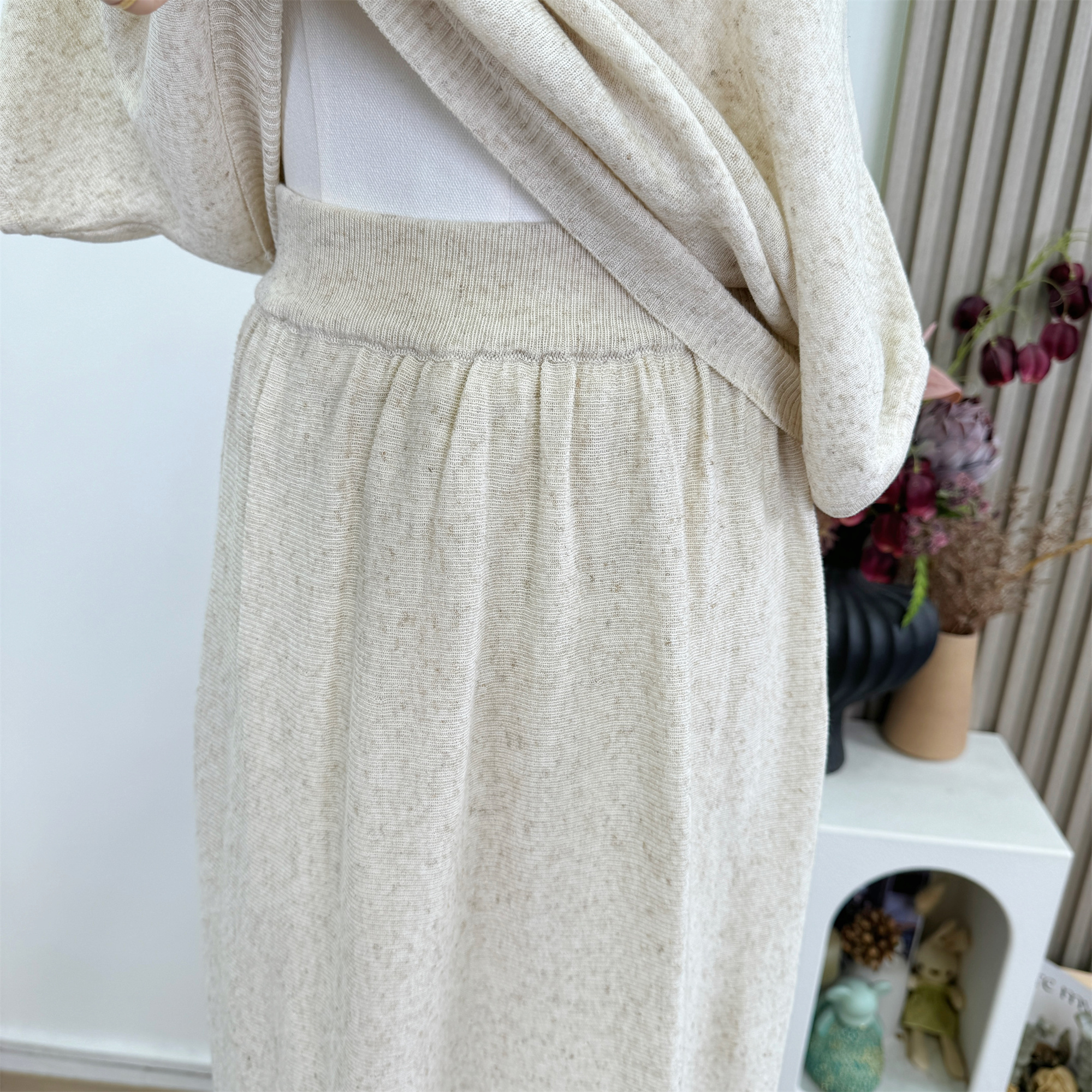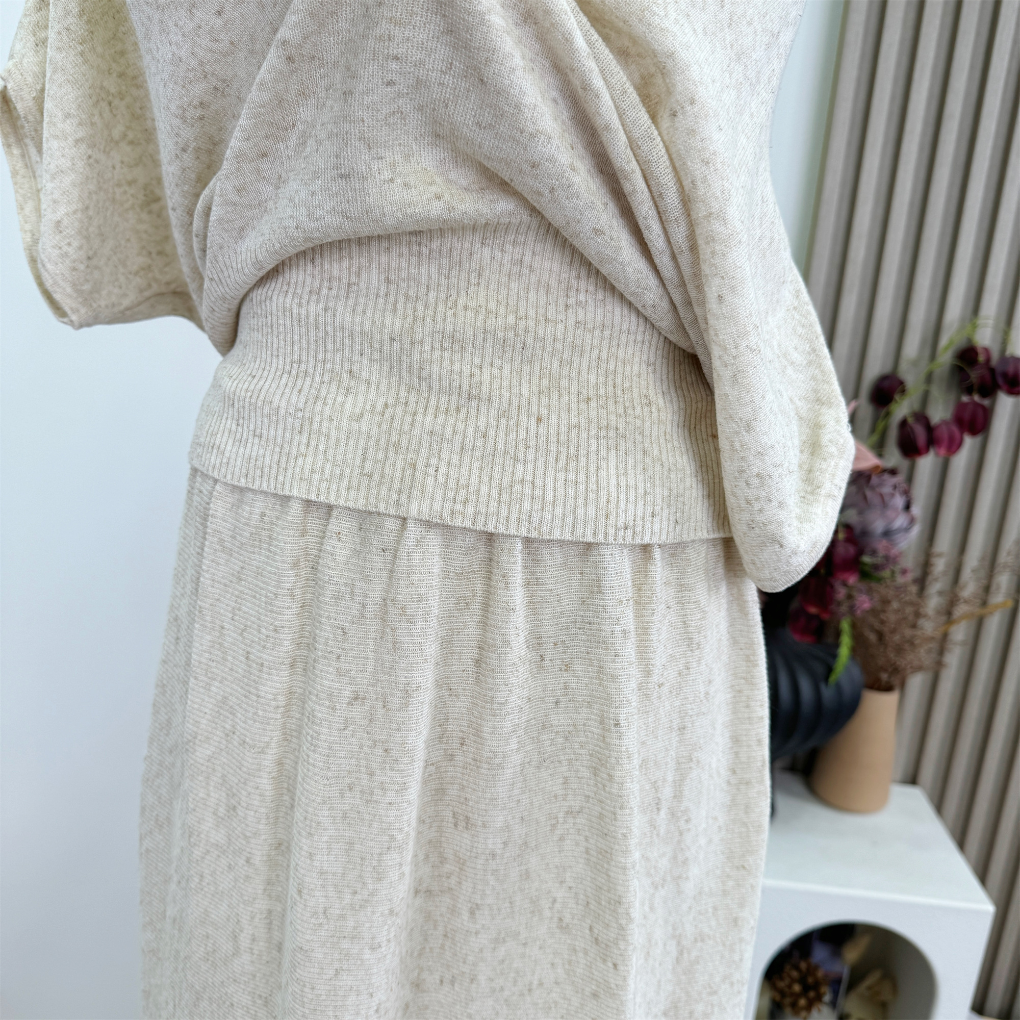 famouswang 여름 새로운 다용도 예술 계열 주간 실크 아마 흔들다 칼라 품격 반 스커트 세트 여성 작은 키