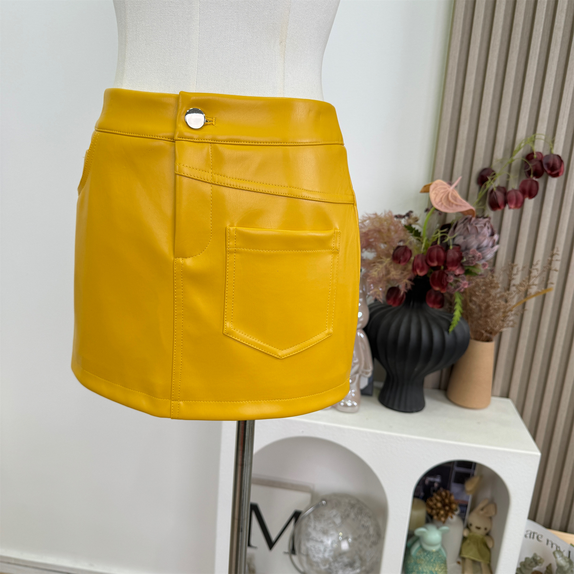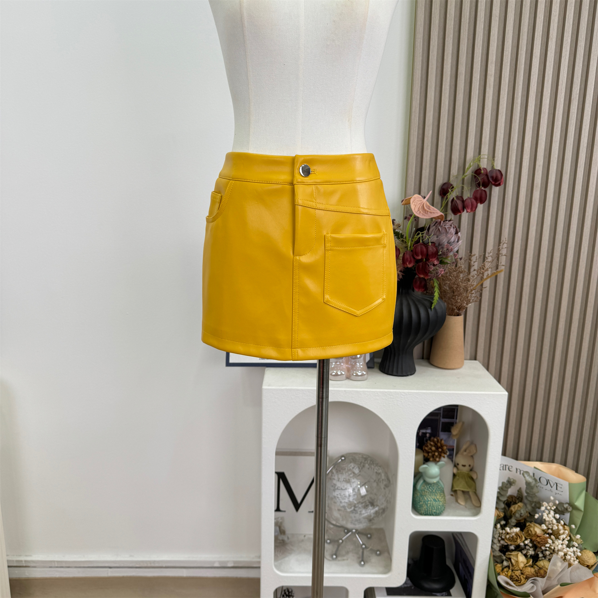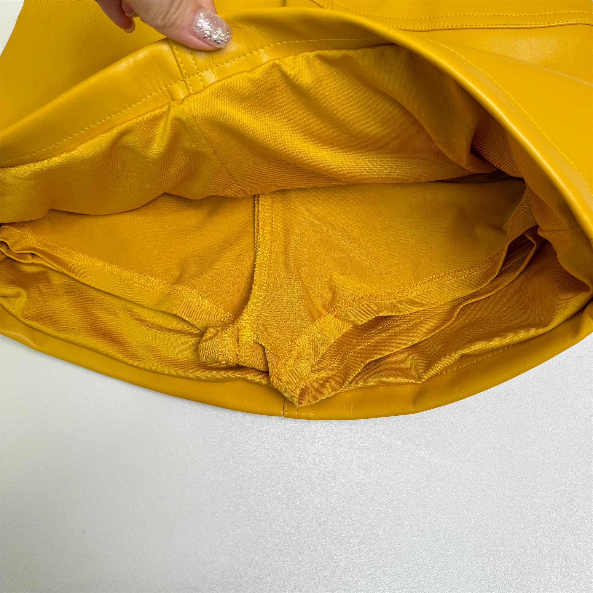 cher 챠오어 비율 고급 밝은 얼굴 피질 가죽 스커트 반신 스커트 여성 여름 황색 몸매 가꾸기 타이트 스커트 미니 스커트