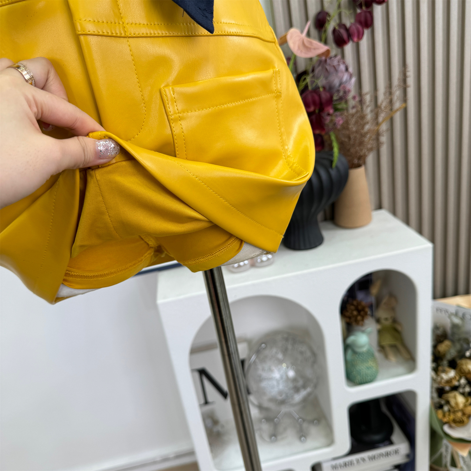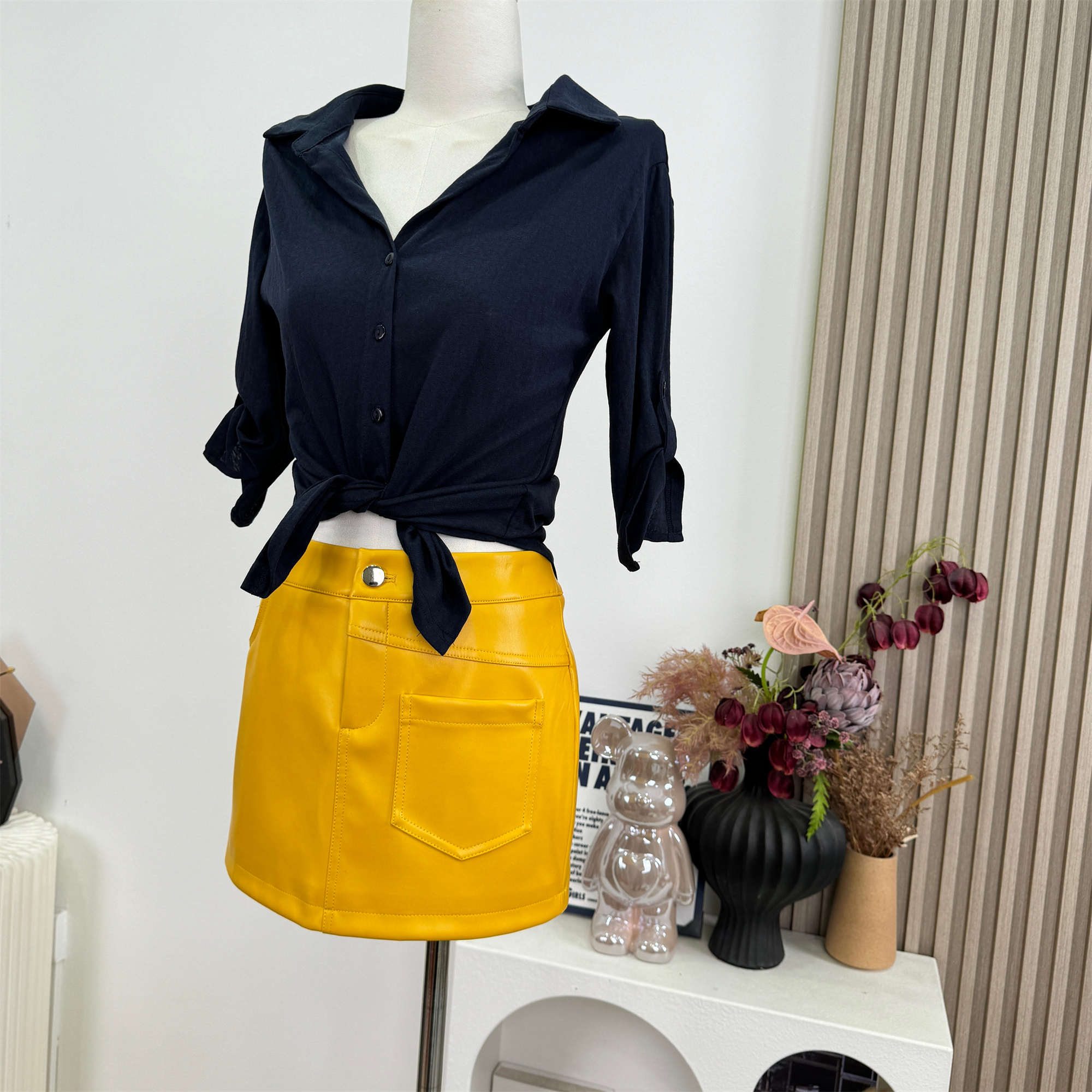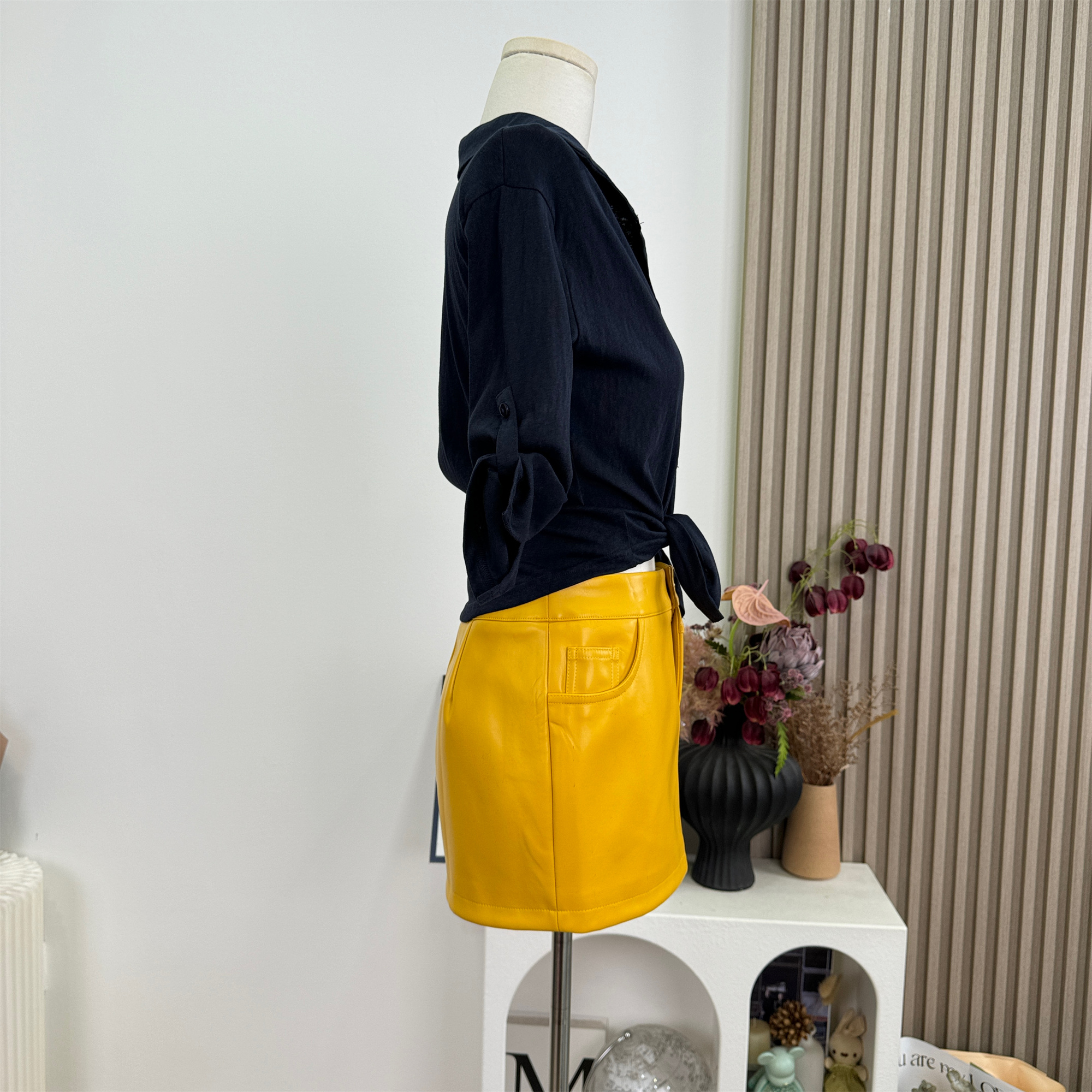 cher 챠오어 비율 고급 밝은 얼굴 피질 가죽 스커트 반신 스커트 여성 여름 황색 몸매 가꾸기 타이트 스커트 미니 스커트