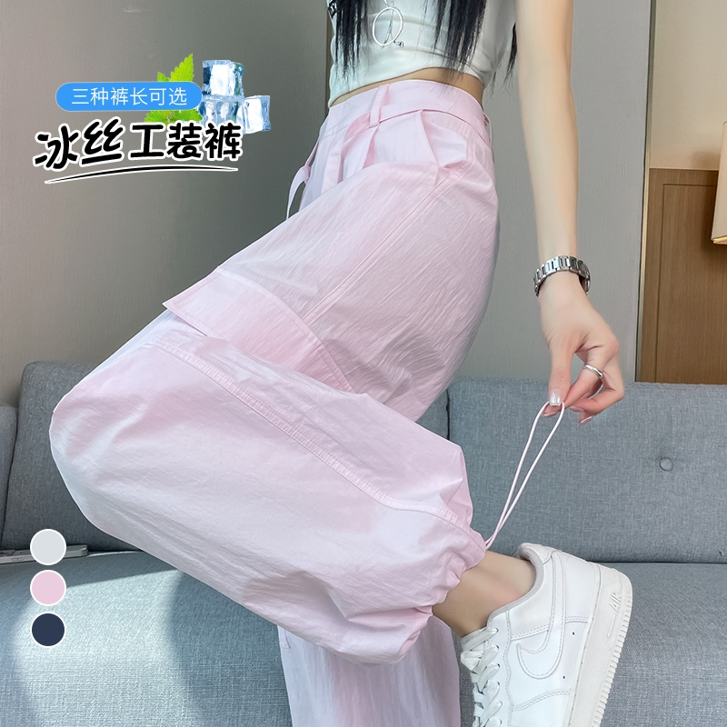 실사 2026 여름 새로운 속도 건조한 워크웨어 팬츠 여성 얇은 스타일 하이웨이스트 속도 건조한 바지 둘 착용 할란 운동 바지