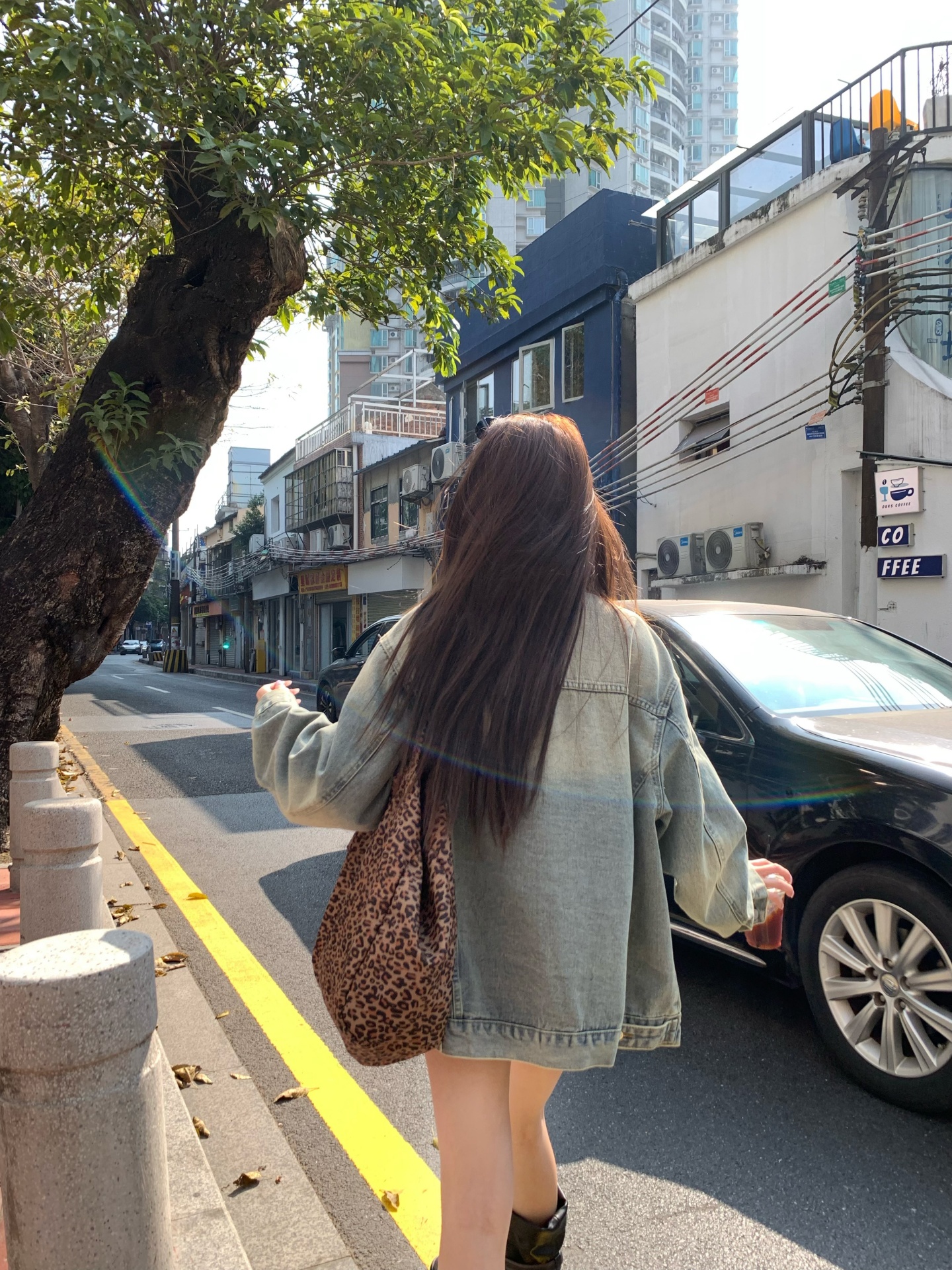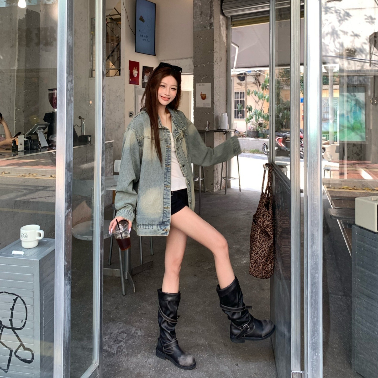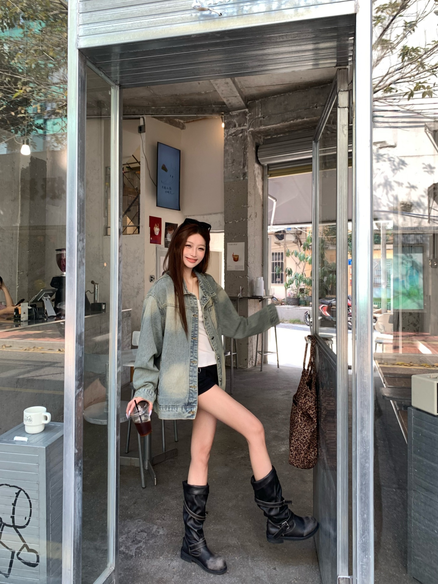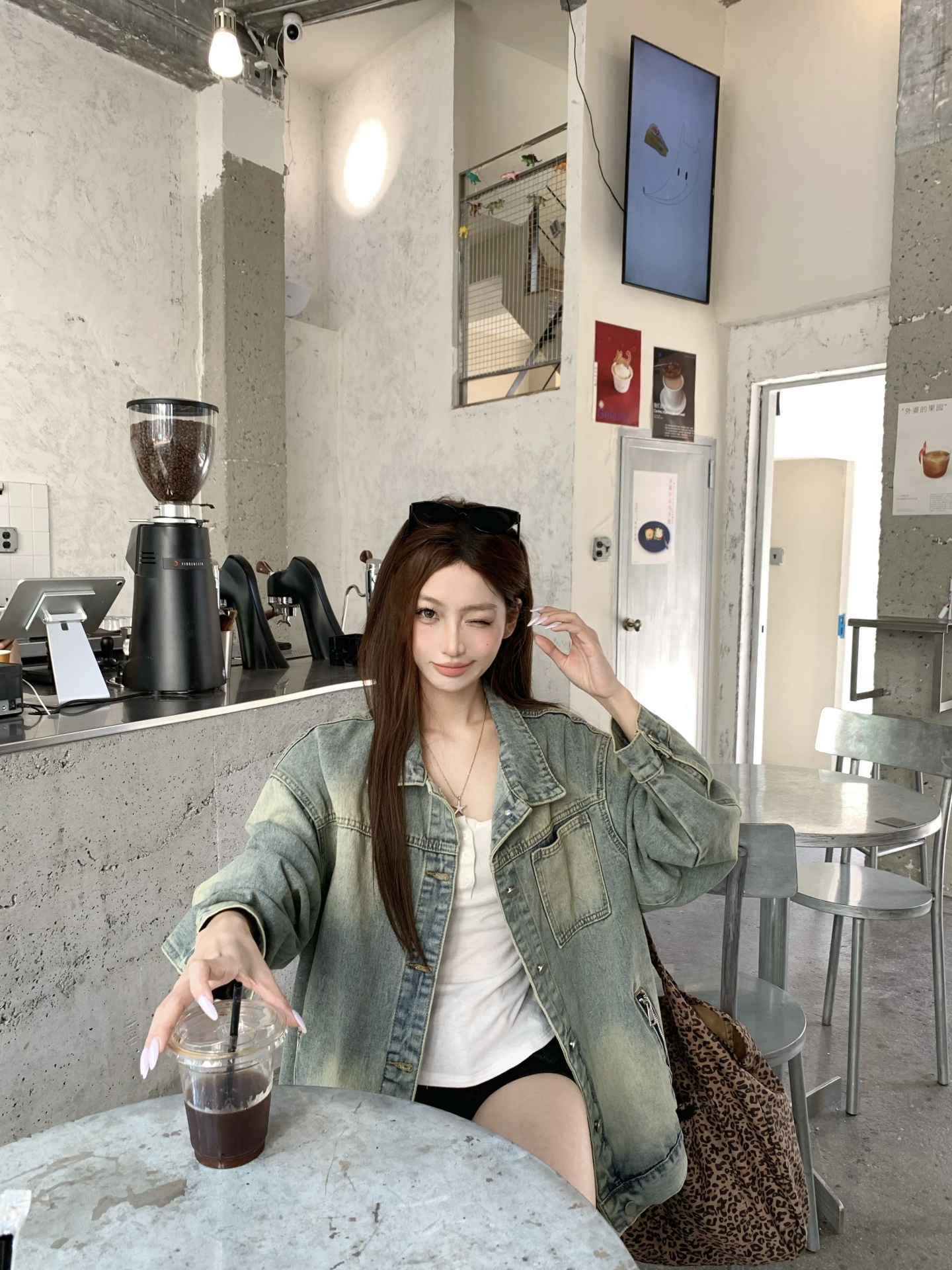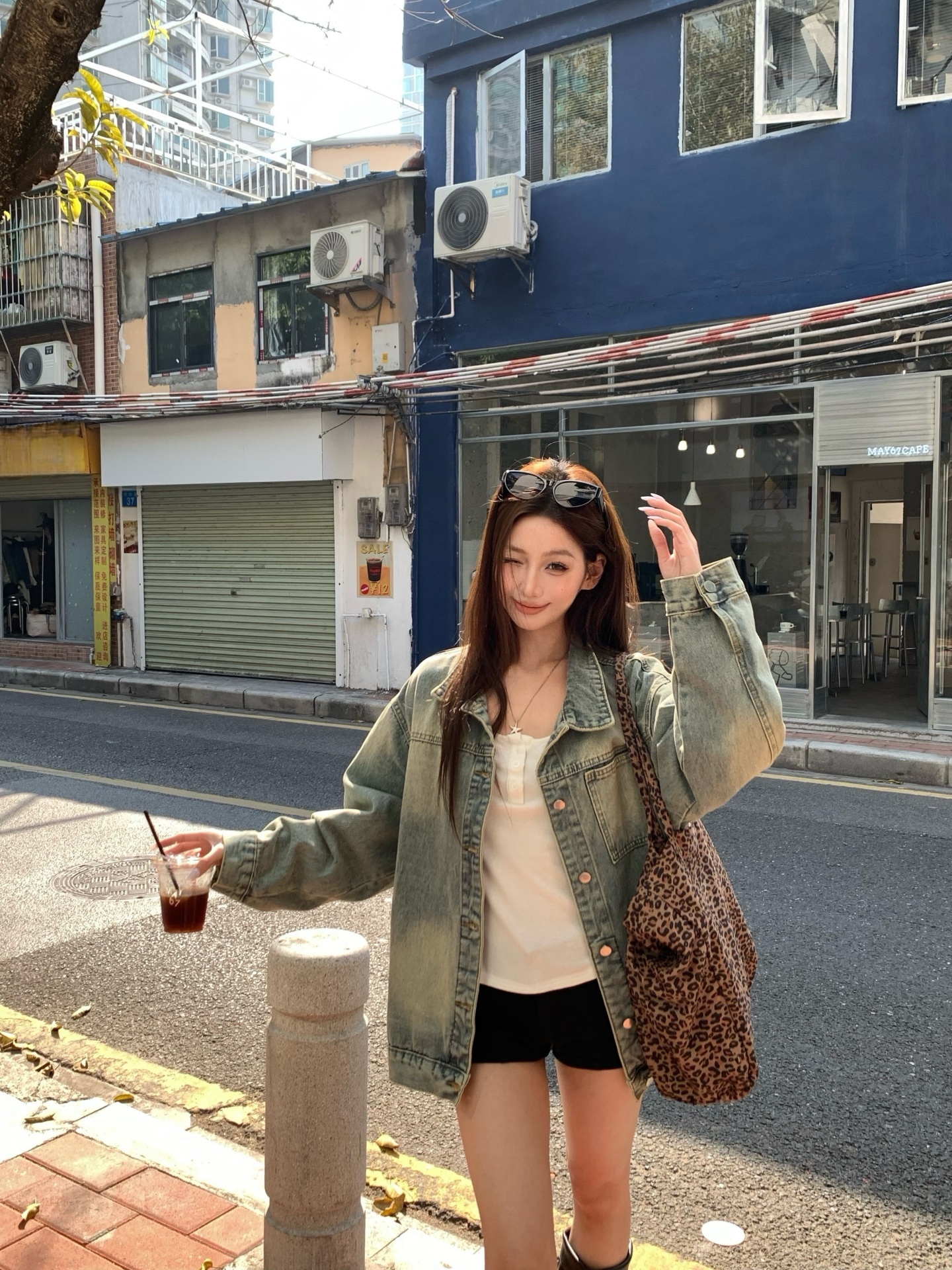 아메리칸 레트로 해체 질감 데님 재킷 루즈핏 프로필 모양 몸매 가꾸기 슬림해 보이는 워크웨어 재킷 여성