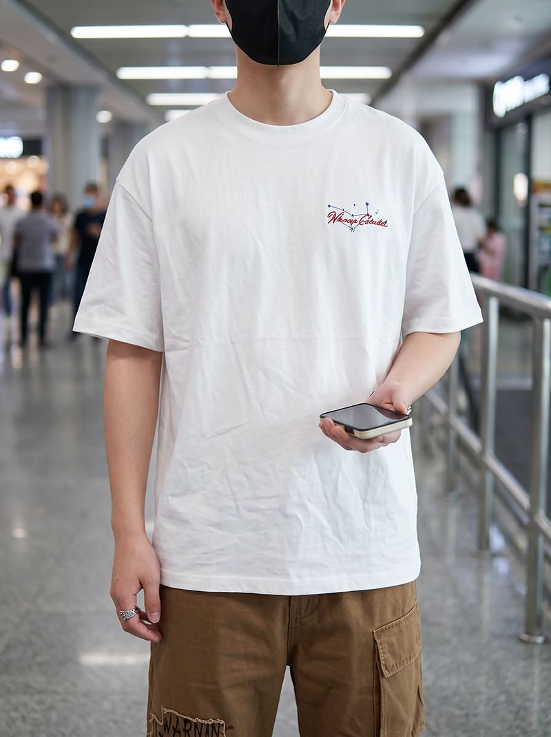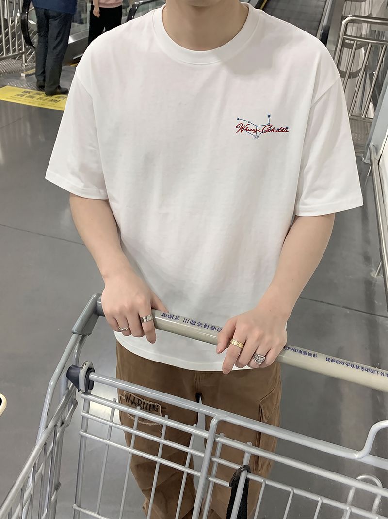 실사 1 1 순면 리브 210 그램 반팔 티셔츠 여름 한 부서 만화 자수 라운드 넥 맨위 여성 의류