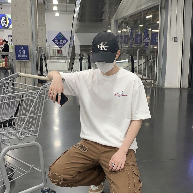 경관 그림 남자 바 면 220 그램 반팔 티셔츠 여성 의류 여름 트렌디 새로운 루즈핏 가시 자수 POLO 칼라 맨위