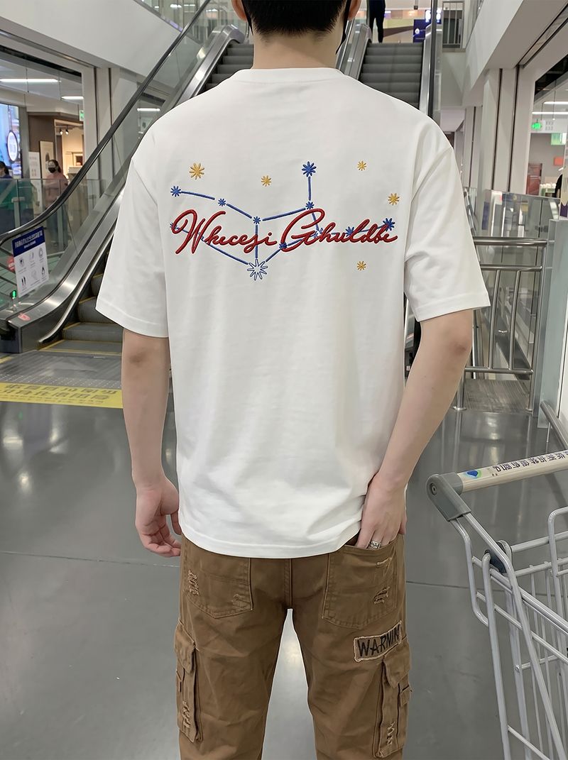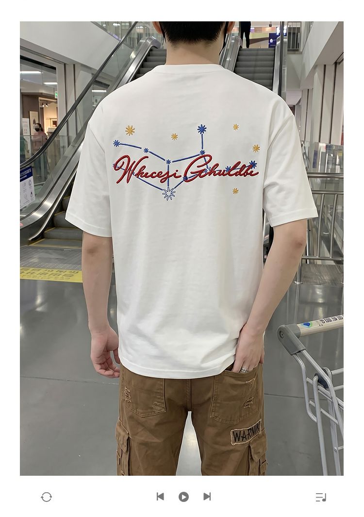 경관 그림 32 더블 실 순면 반팔 티셔츠 남녀 커플룩 여름 새로운 가시 자수 라운드 넥 맨위