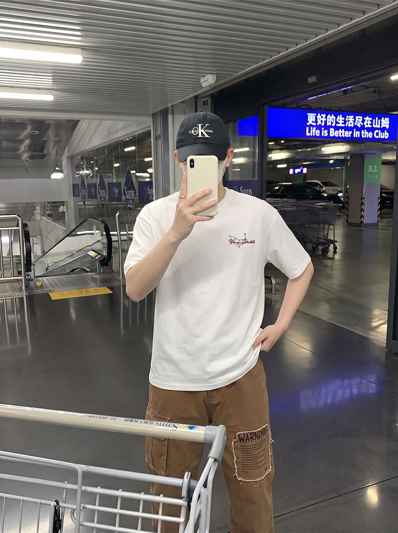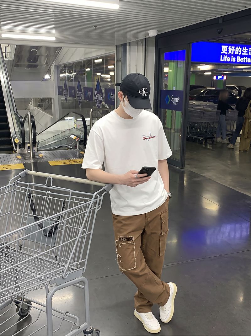 경관 그림 남자 바 면 220 그램 반팔 티셔츠 남녀 커플룩 여름 새로운 자수 배색 POLO 칼라 맨위
