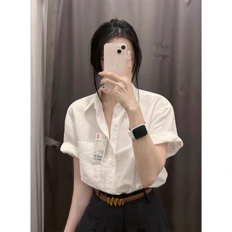 100 순면 반팔 흰 셔츠 프랑스식 디자인 캐주얼 센스 작은 대중 여름 루즈핏 셔츠 고급 화이트 맨위