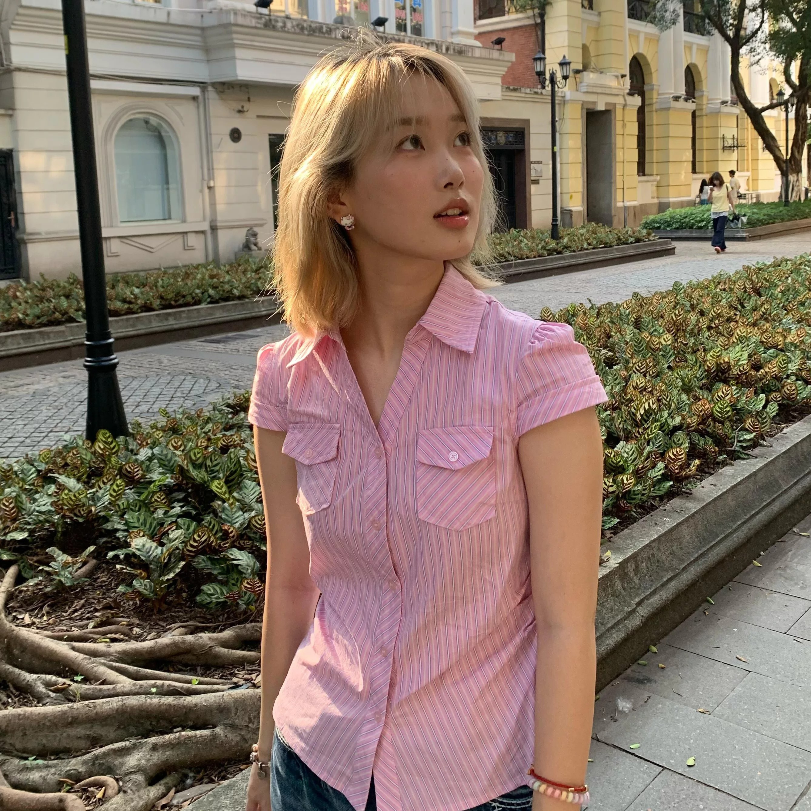 여름 자이언트 잘 생긴 학원 스타일 핑크색 스트라이프 반팔 여성 셔츠 2026 새로운 디자인 센스 몸매 가꾸기 슬림해 보이는 셔츠