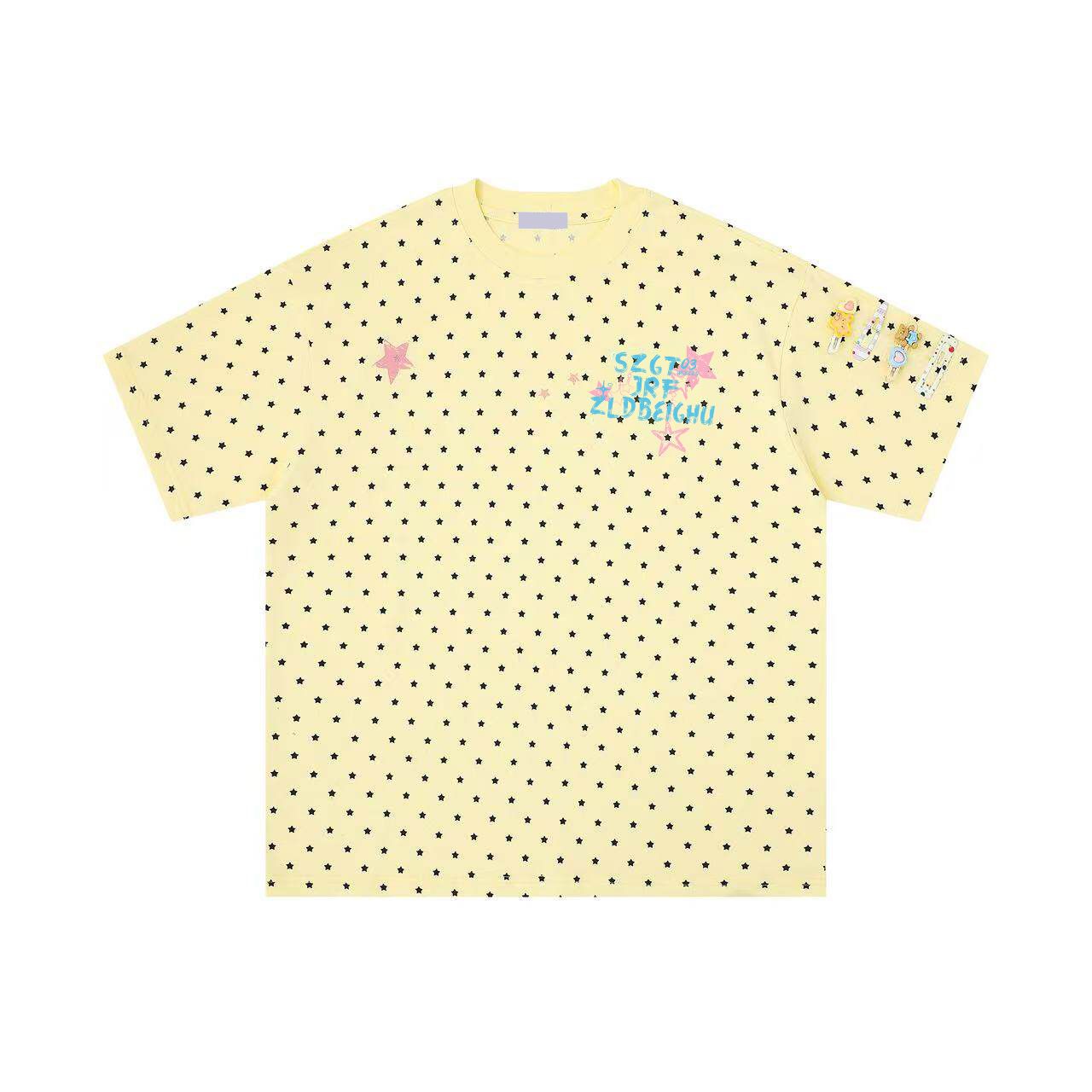 경관 그림 1 1 순면 리브 210 그램 반팔 티셔츠 여성 여름 새로운 도트 무늬 자수 페이크 레이어드 맨위