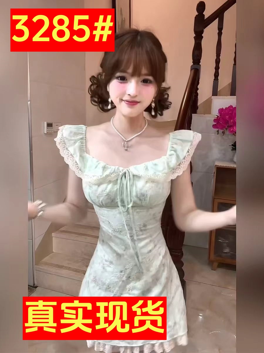 박하 녹색 꽃무늬 여성 드레스 여름 2026 새로운 작은 키 롱 스커트
