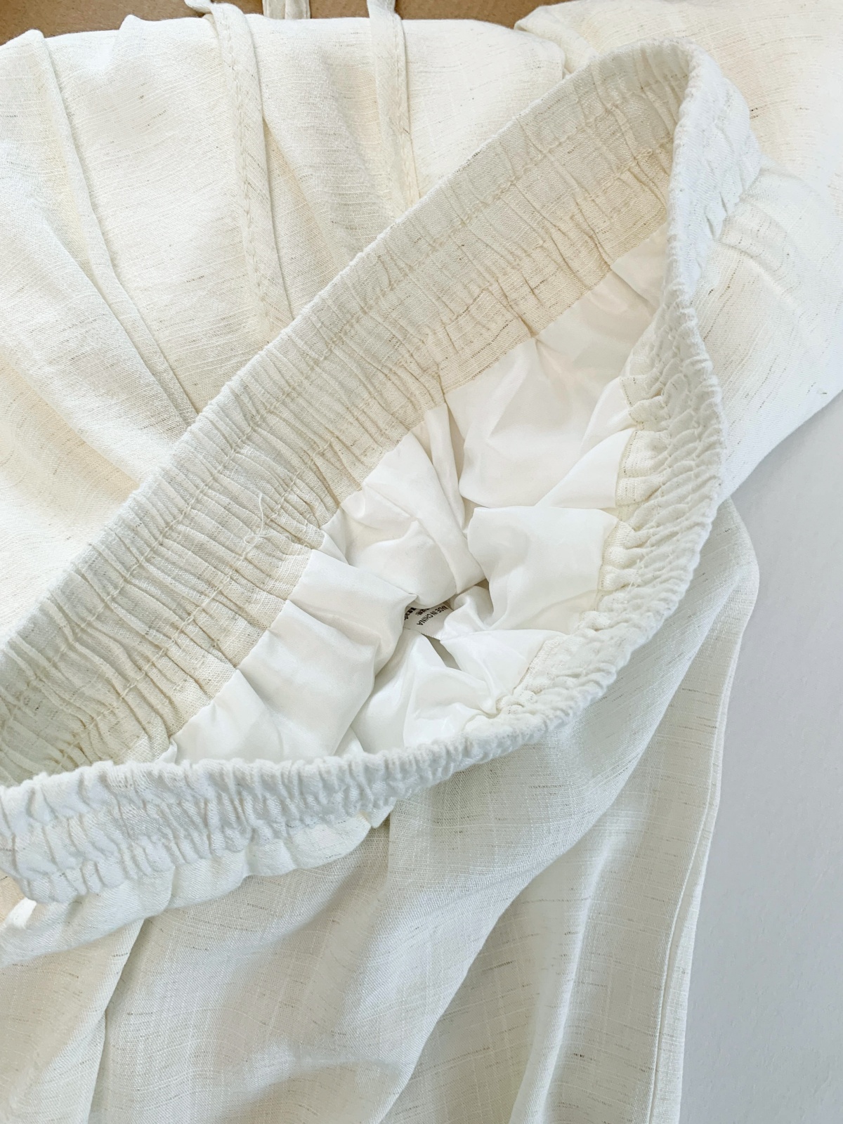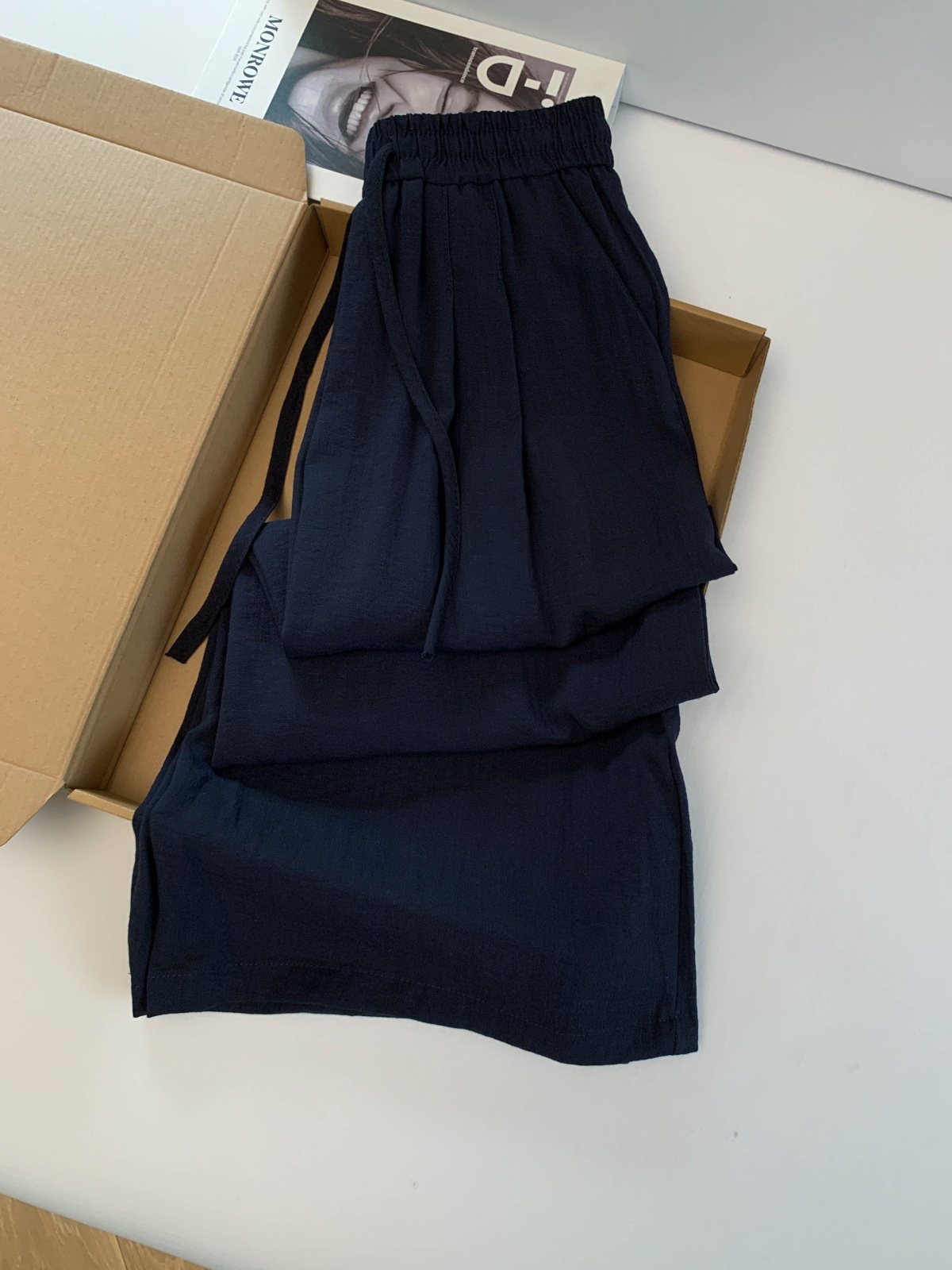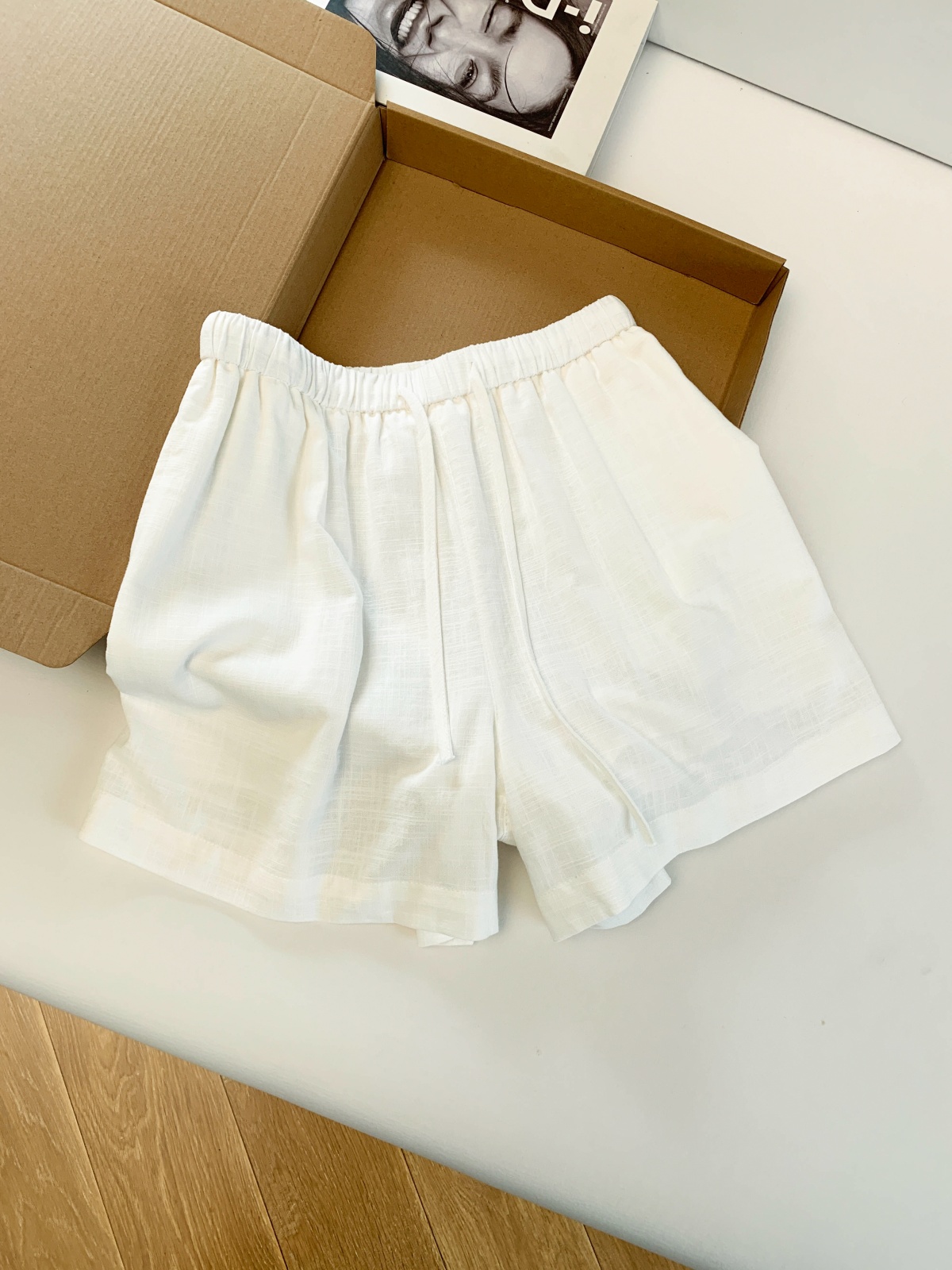 화이트 아마 반바지 여성 여름 2026 새로운 작은 키 루즈핏 슬림해 보이는 허리밴드 한 마디 캐주얼 와이드 레그 팬츠