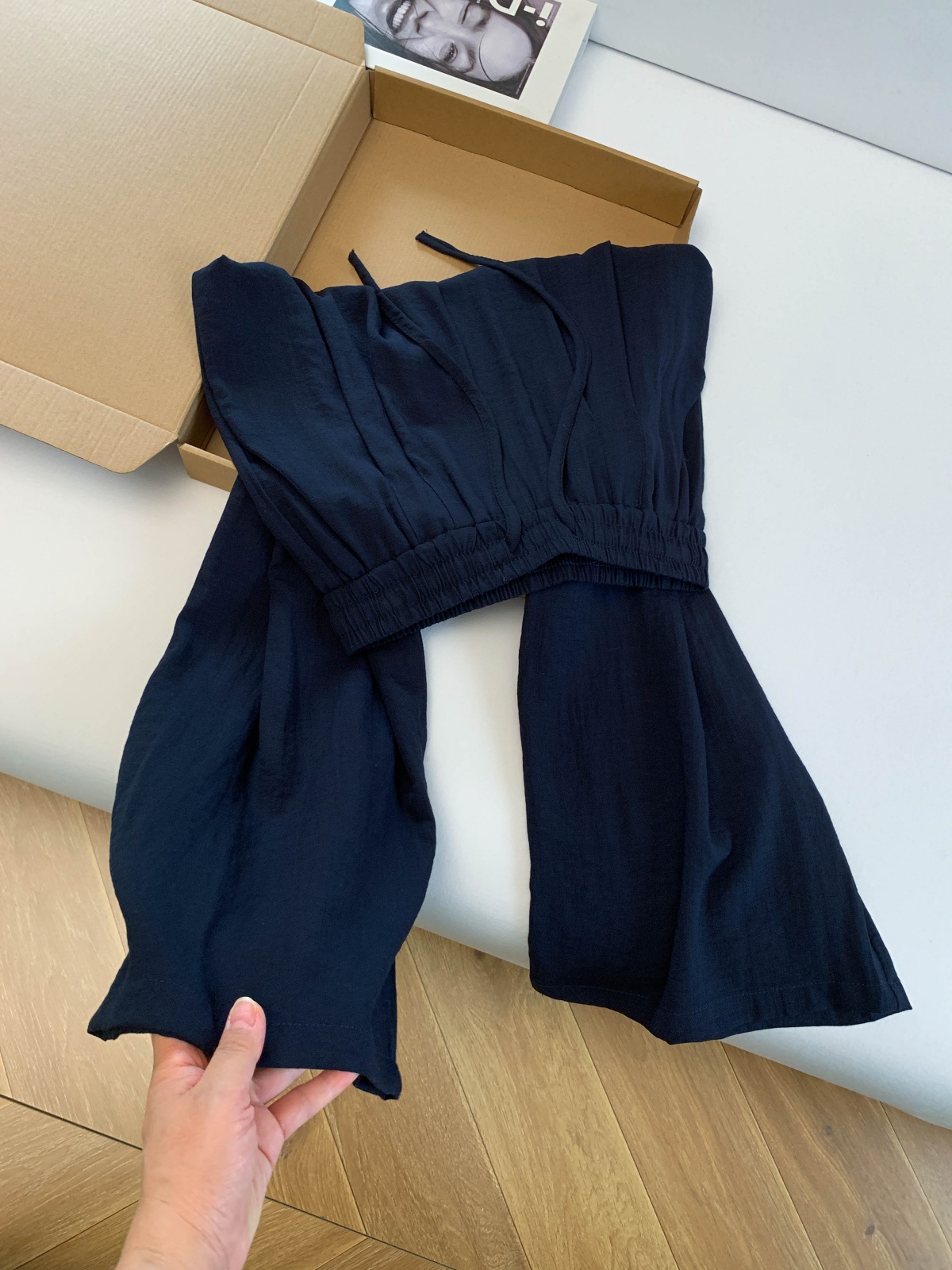 실사 2026 년 레트로 라미 작은 스탠드 칼라 자수 맨위 넓은 다리 길이 바지 투피스 세트