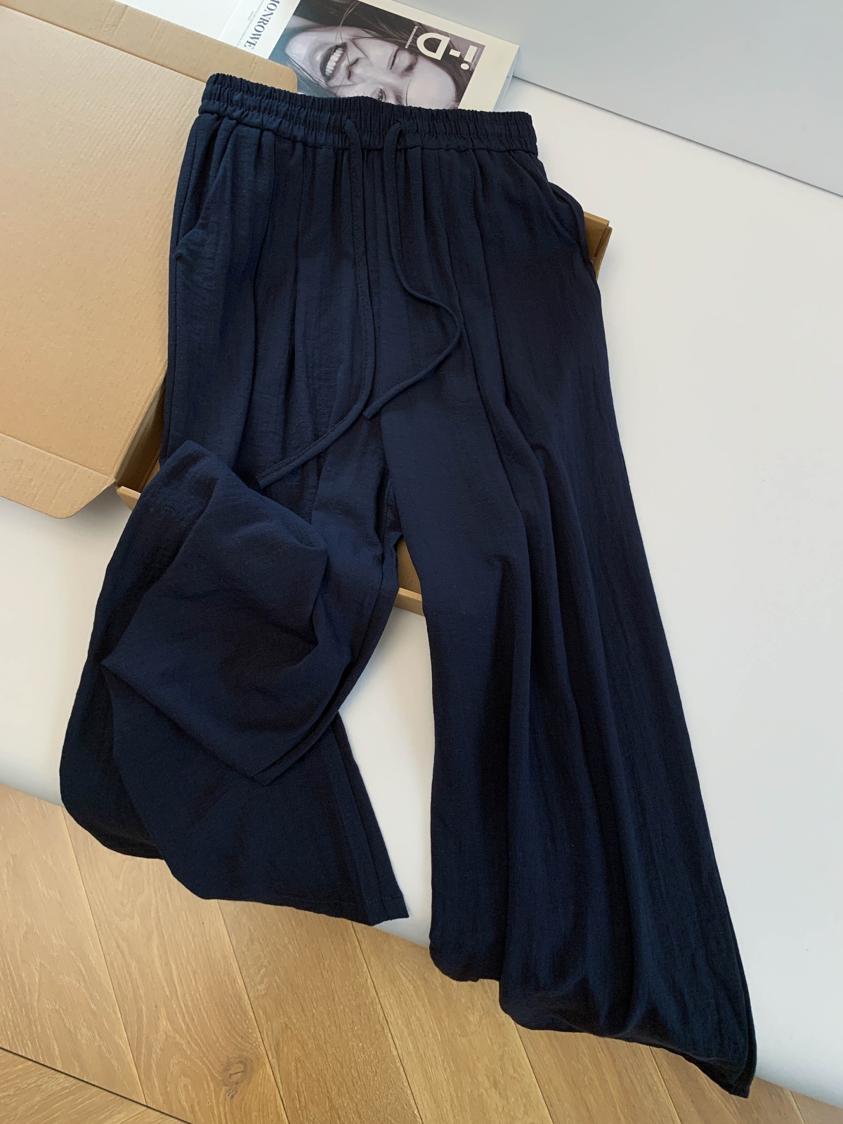 화이트 주간 실크 아마 와이드 레깅스 바지 작은 키 여름 새로운 오래된 돈 바람 도루 센스 면 린넨 캐주얼 스트레이트 긴 바지