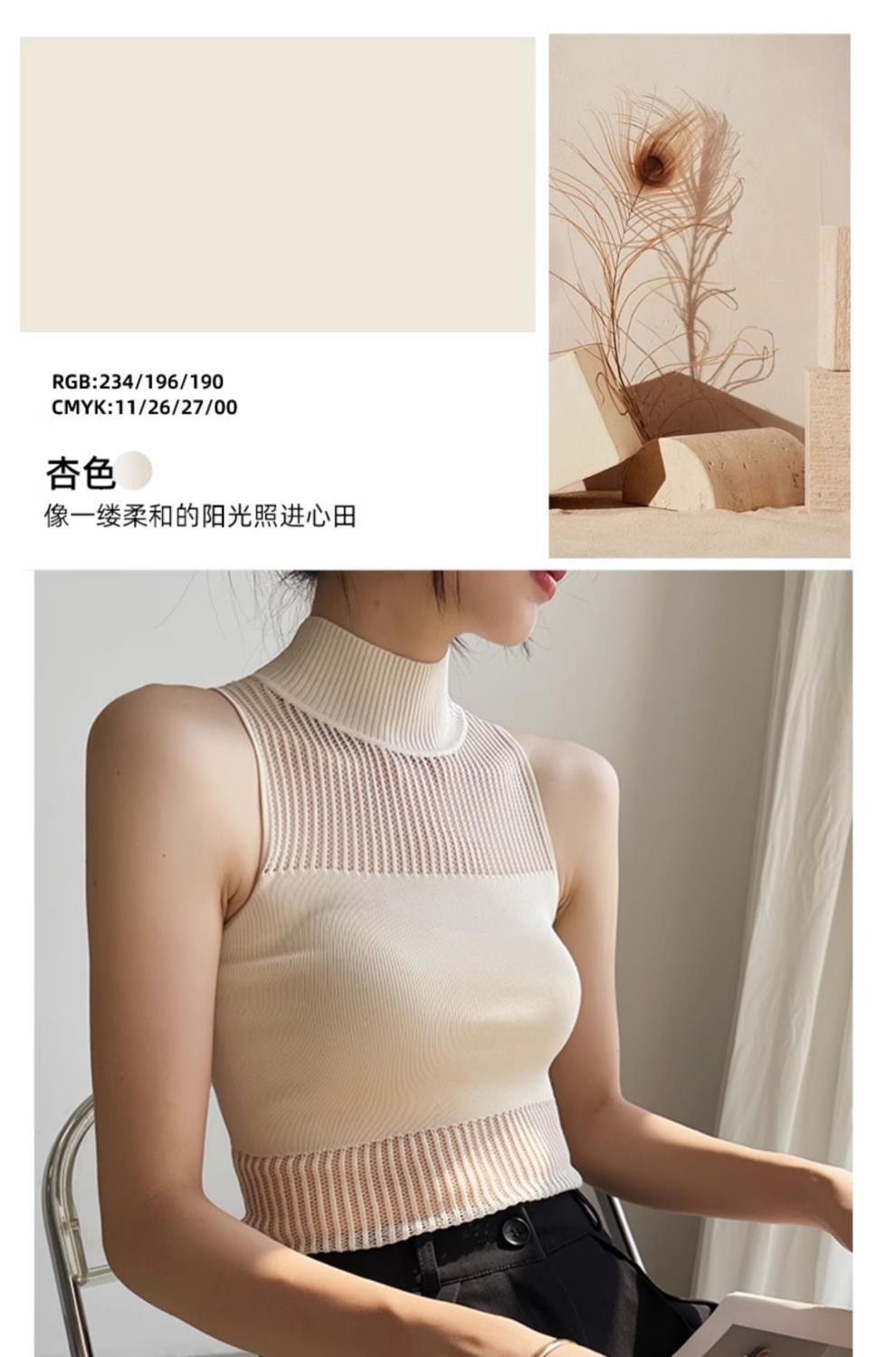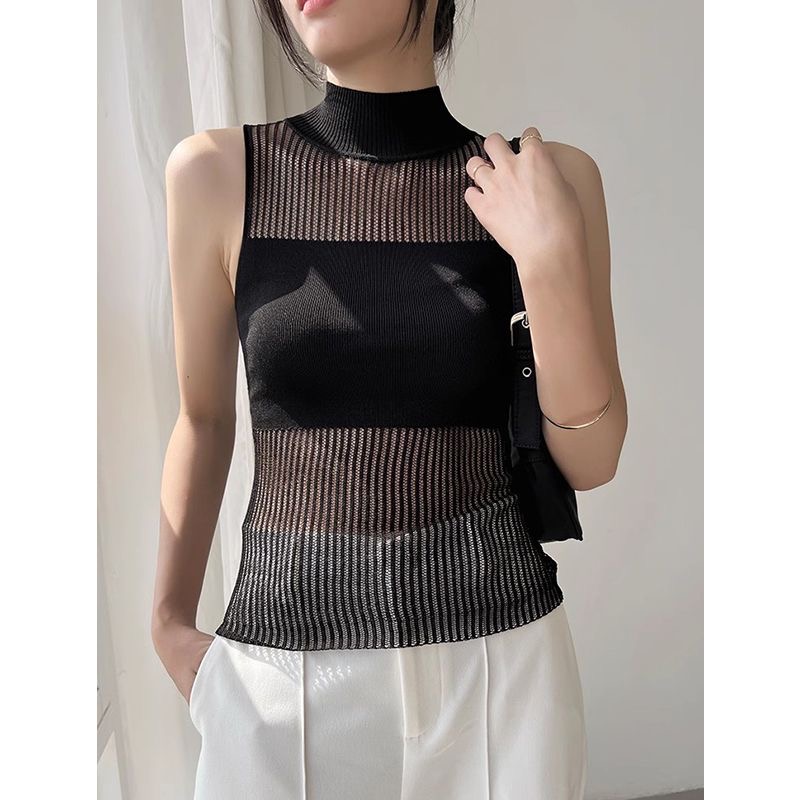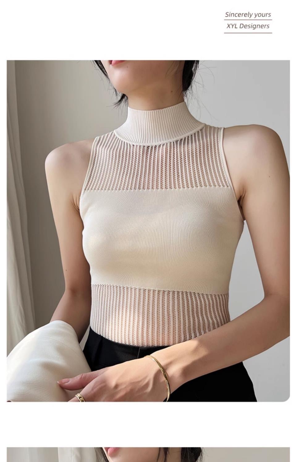 반하이넥 만나는 조끼 여성 새로운 인사이드 가져 가라. 섹시함 몸매 가꾸기 가을 겨울 민소매 니트 홀로우 아웃 맨위 얼음 차가운 실크