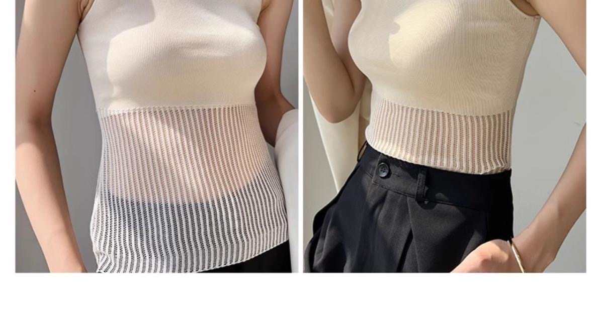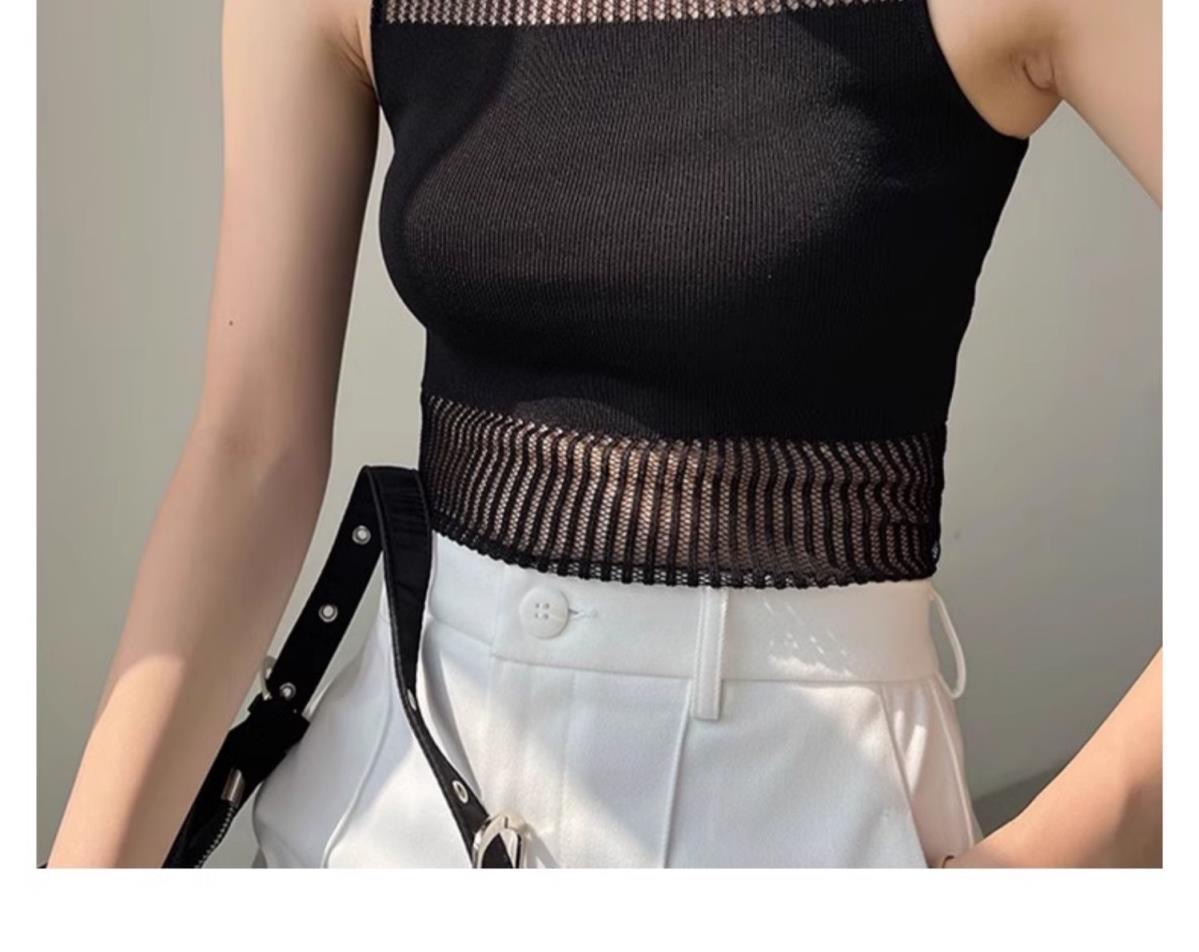 달콤한 핫걸 섹시함 아메리칸 홀로우 아웃 니트 조끼 여성 인사이드 가져 가라. 외출용 민소매 쇼트 스타일 얼음 차가운 실크 유럽 오간자