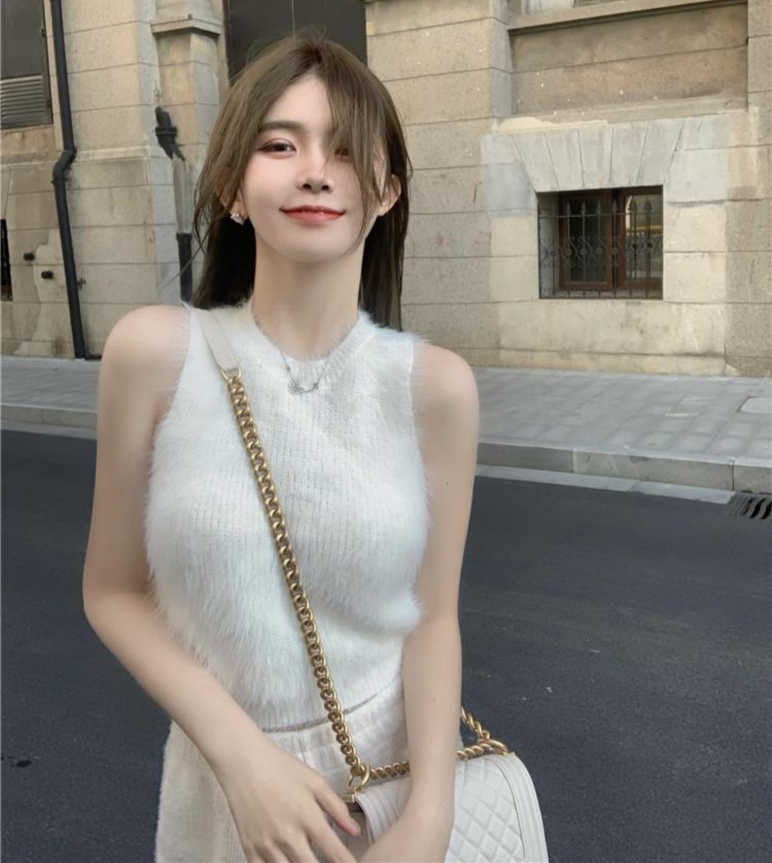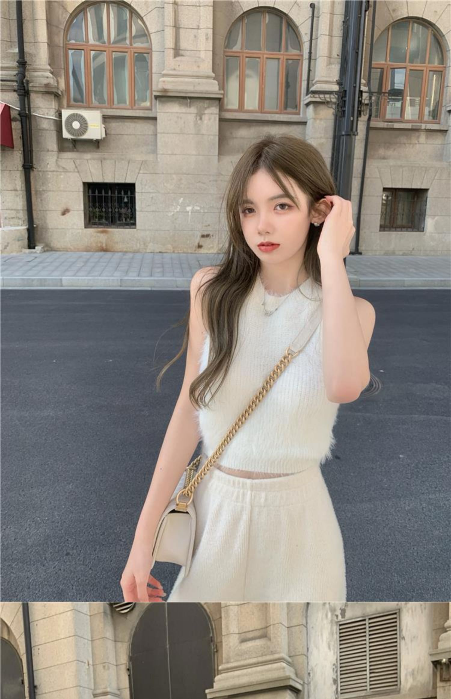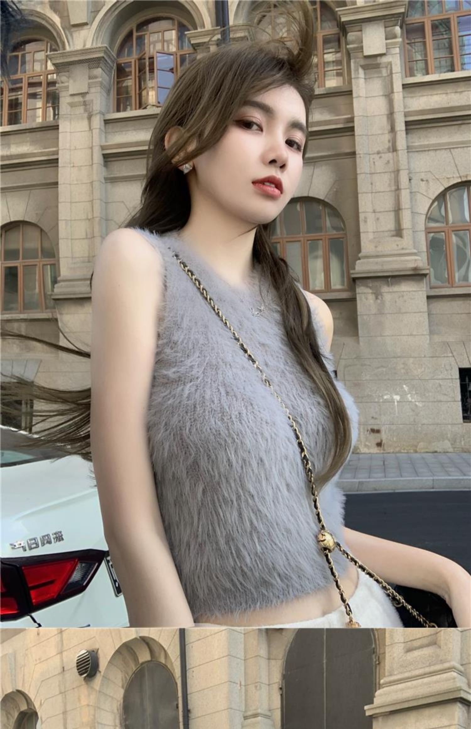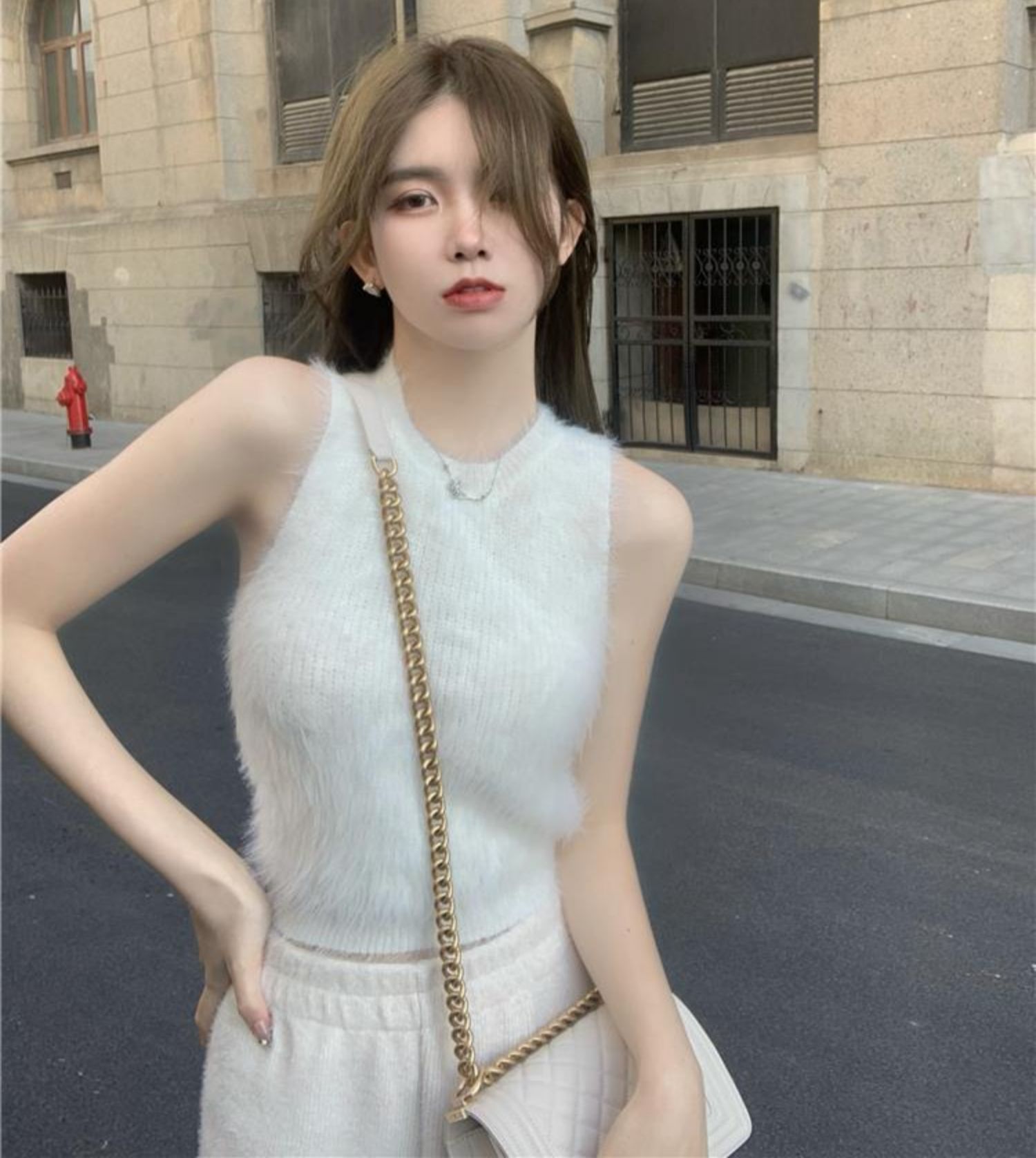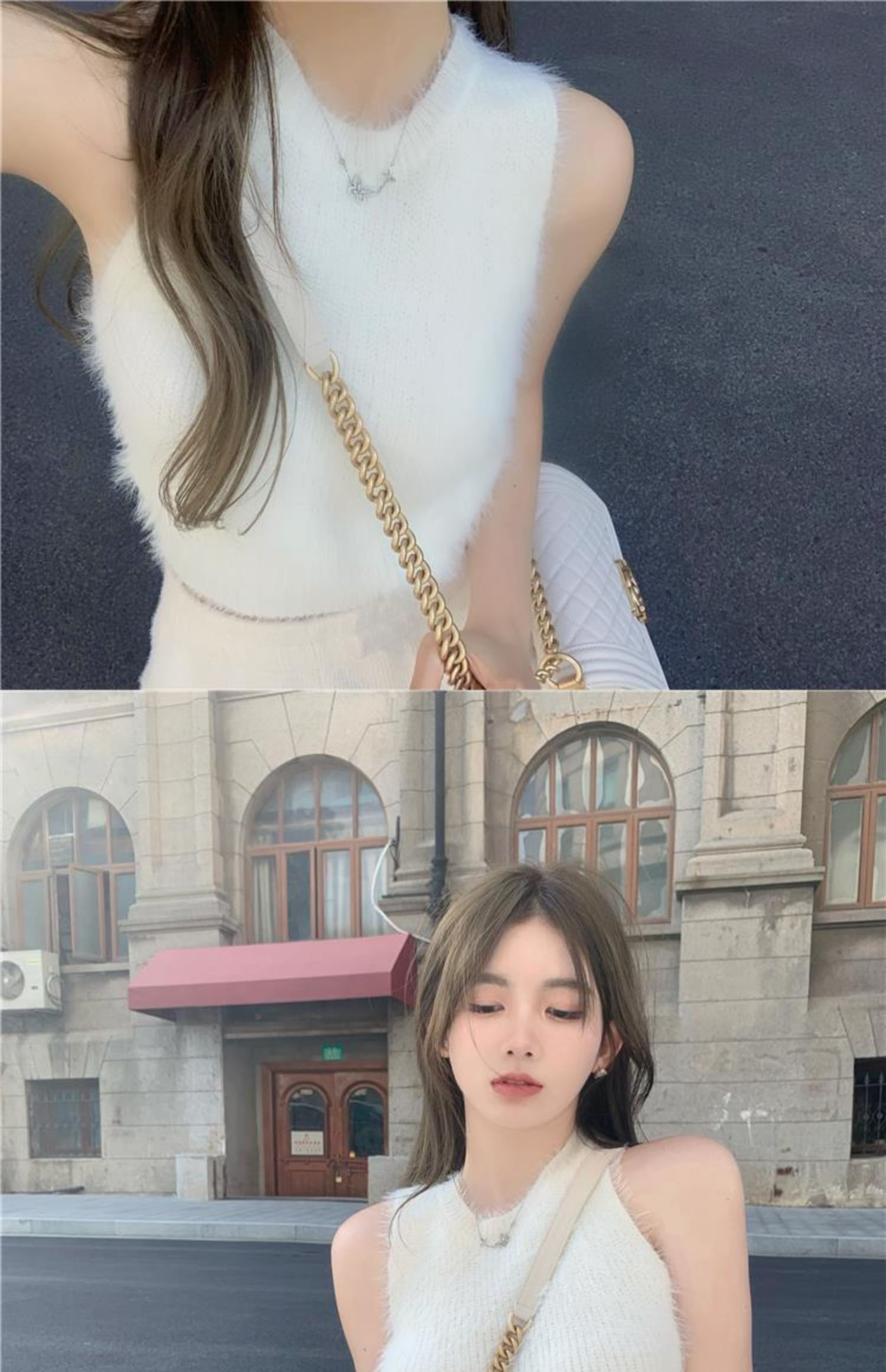 민소매 스웨터 여자 밍크 울 풀오버 조끼 가을 겨울철 쇼트 스타일 플리스 플러시 기본 셔츠 외출용 모방 fall 털