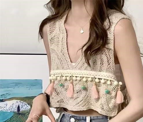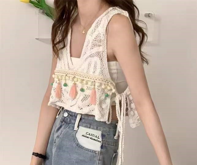 2026 여름 새로운 홀로우 아웃 캐미솔 여름 보헤미안 바람 민소매 베스트 맨위 면사