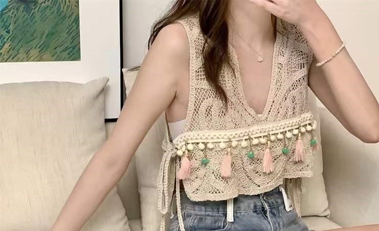 달콤한 핫걸 섹시함 아메리칸 홀로우 아웃 니트 조끼 여성 인사이드 가져 가라. 외출용 민소매 쇼트 스타일 얼음 차가운 실크 유럽 오간자