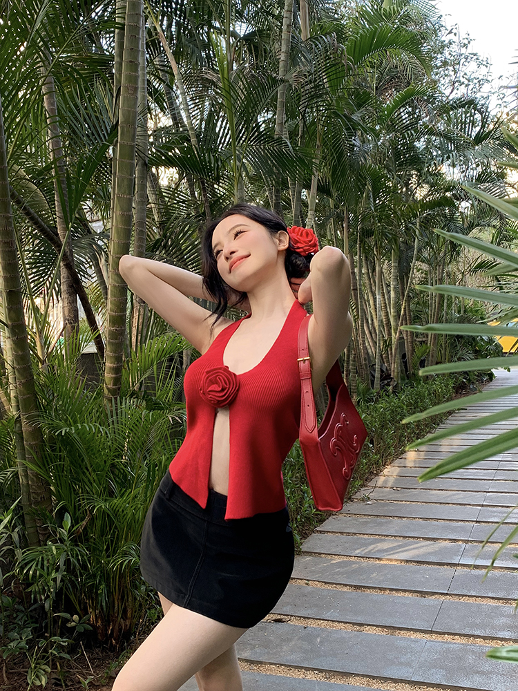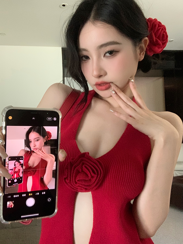 같은 단락 2026 여름 한국 스타일 외국 가스 라운드 넥 무거운 작업 3 차원 꽃 슬림해 보이는 조끼 얼음 차가운 실크