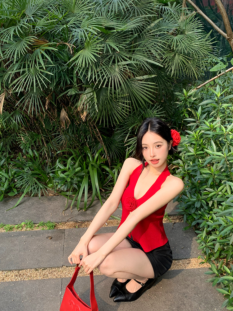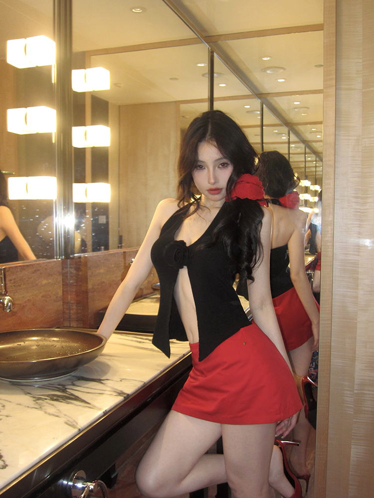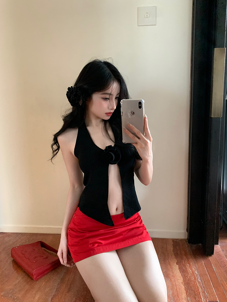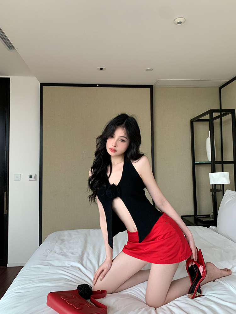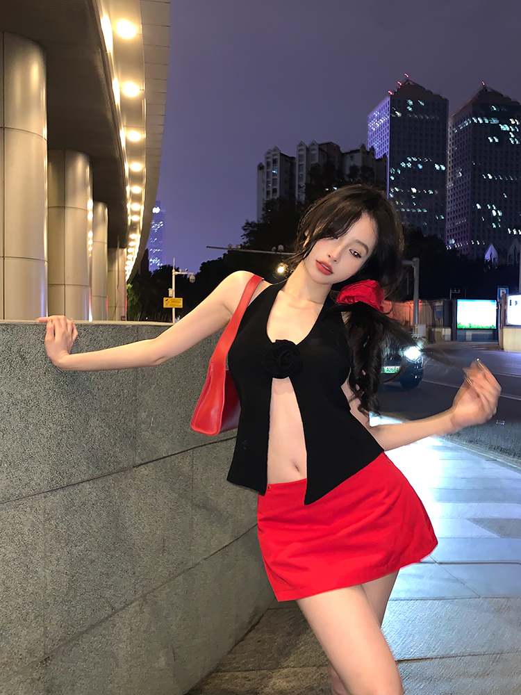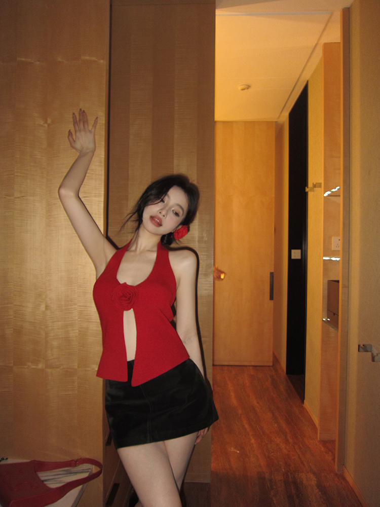 원 3206 백리스 티셔츠 여성 여름 섹시함 달콤함 몸매 가꾸기 심장 기계 작은 대중 민소매 외출용 조끼 V넥 얼음 차가운 실크
