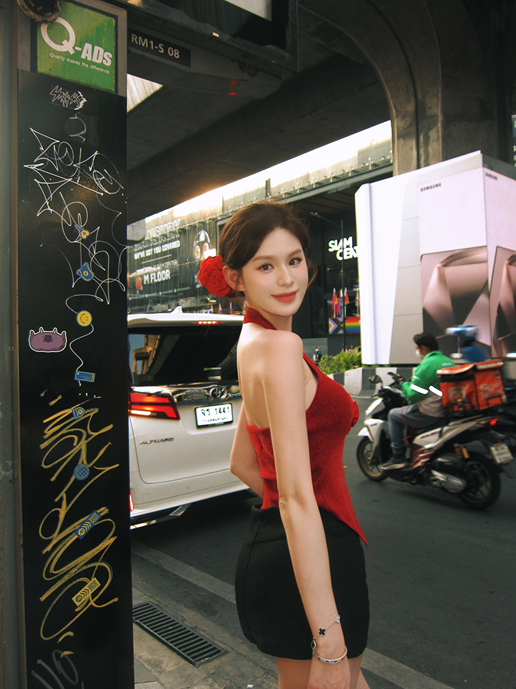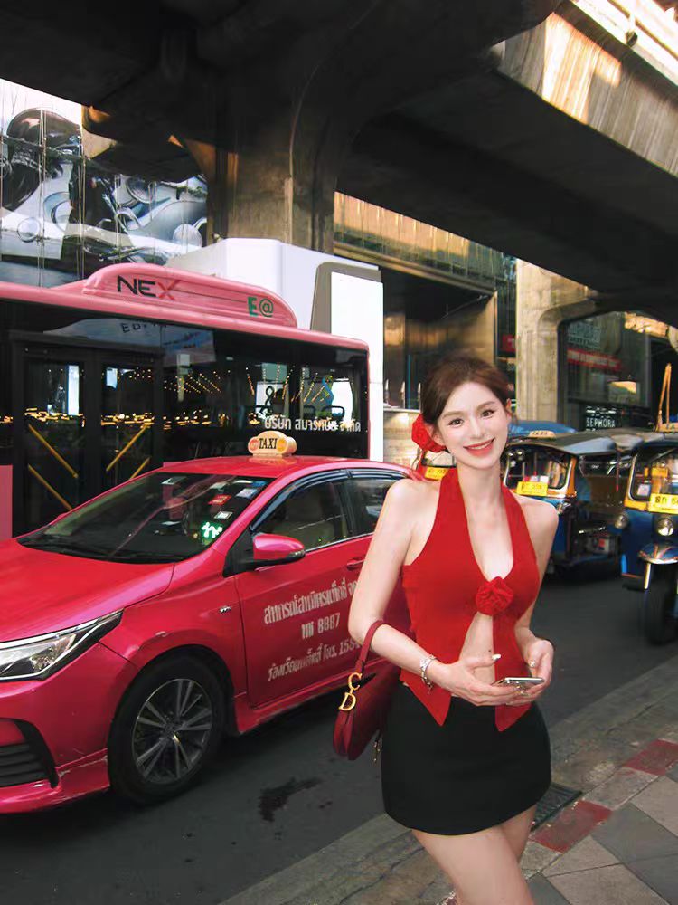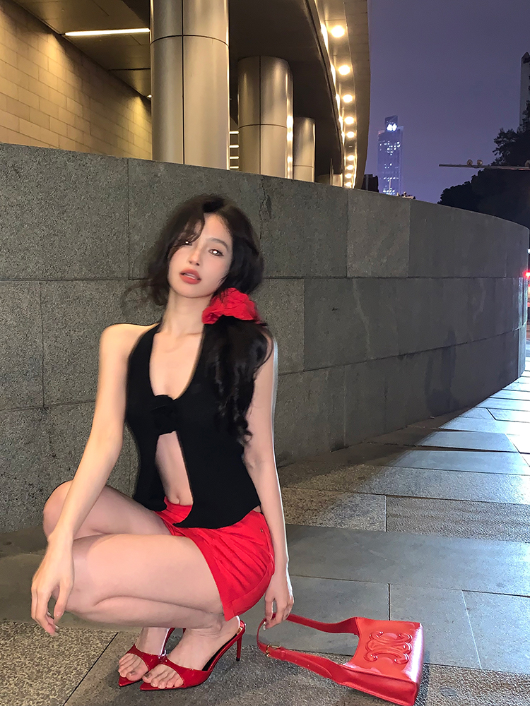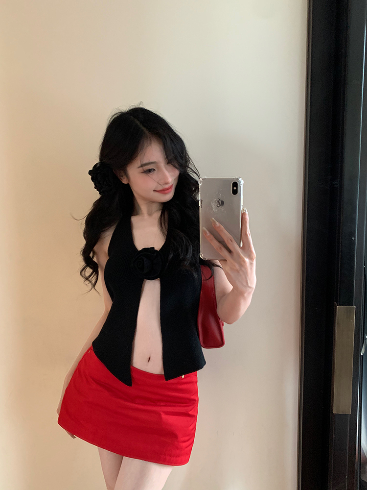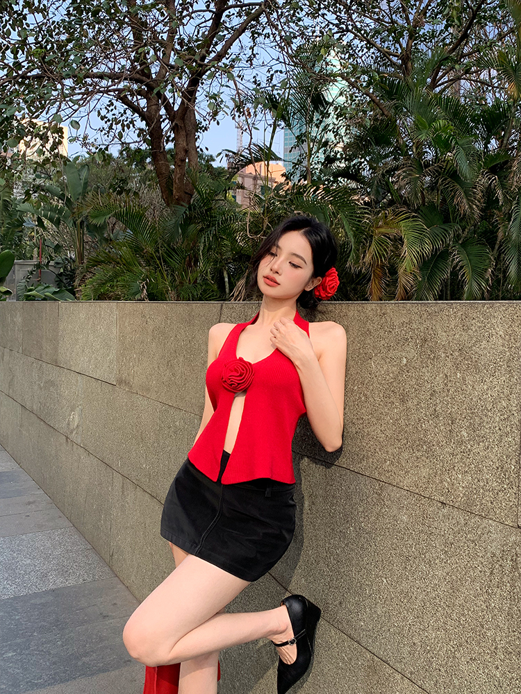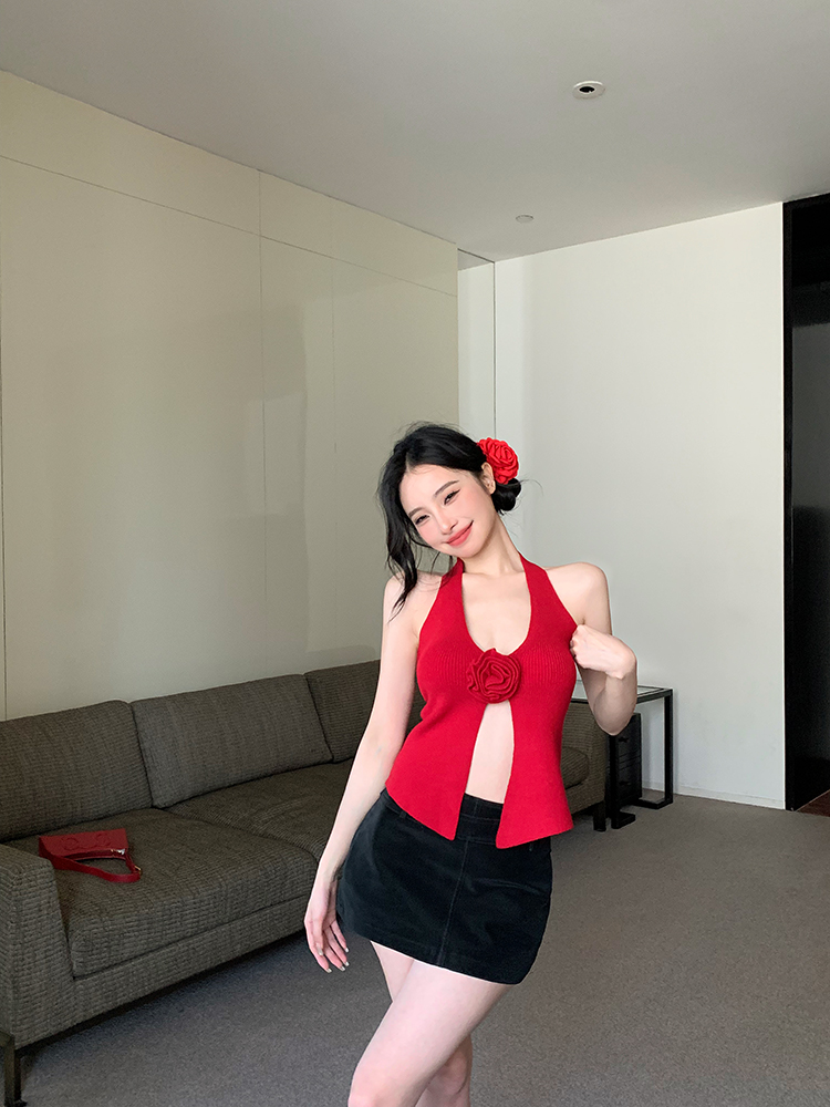 원 3206 백리스 티셔츠 여성 여름 섹시함 달콤함 몸매 가꾸기 심장 기계 작은 대중 민소매 외출용 조끼 V넥 얼음 차가운 실크