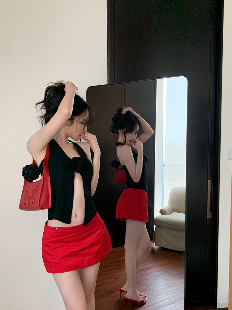 아메리칸 레트로 민소매 단어 캐미솔 여성 의류 여름 단색 핫걸 몸매 가꾸기 다용도 외출용 얼음 차가운 실크