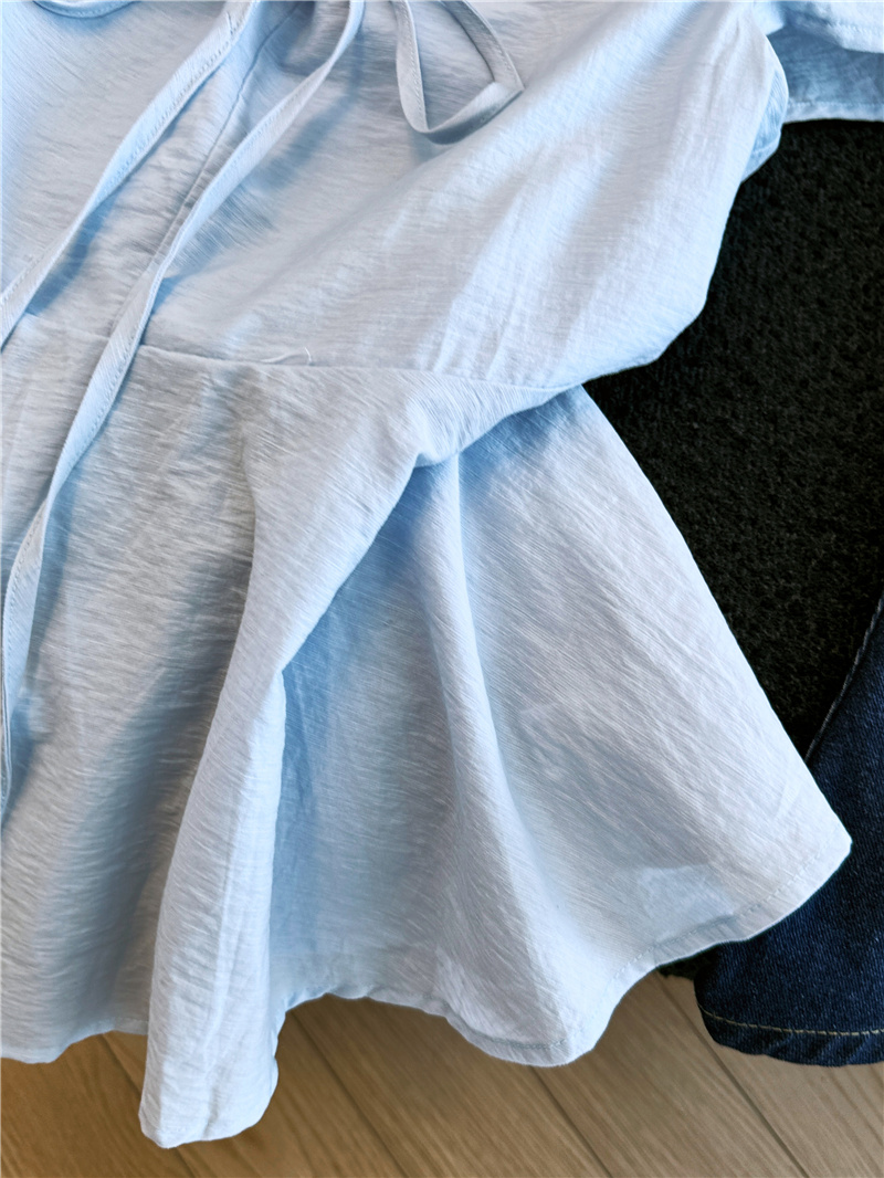 2026 새로운 순수한 욕망 바람 라이 경기 서울 작은 레이스 이중층 밑단 작은 셔츠 여성 수직 기사 질감 반팔 셔츠 맨위