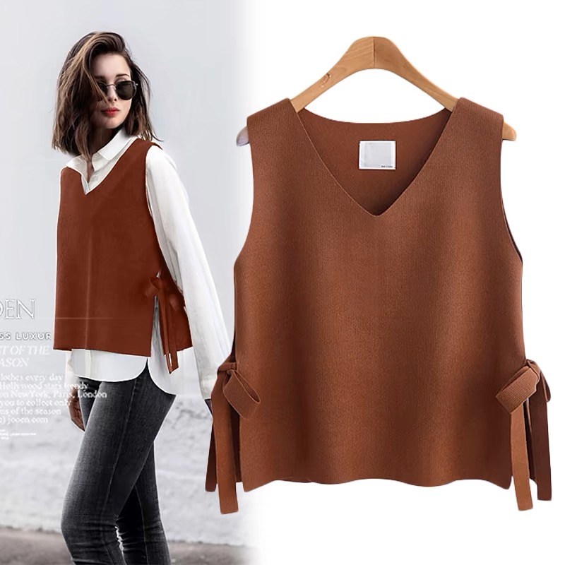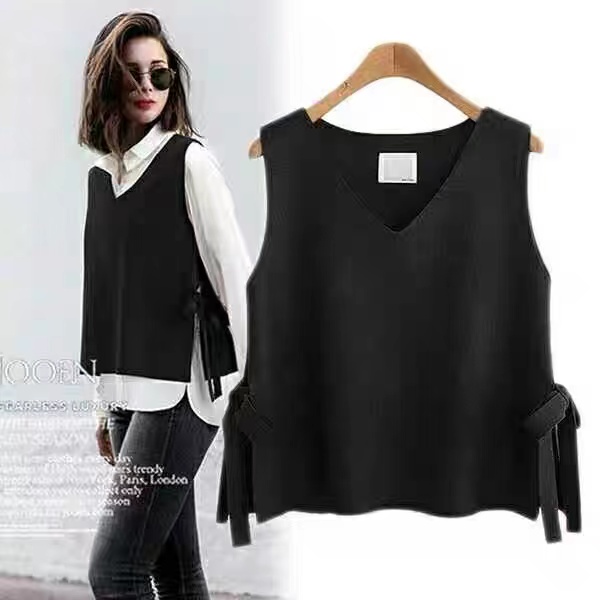 니트 베스트 조끼 여성 가을 겨울 스웨터 어깨 겨울 외출용 스택 착용 패키지 코어 실