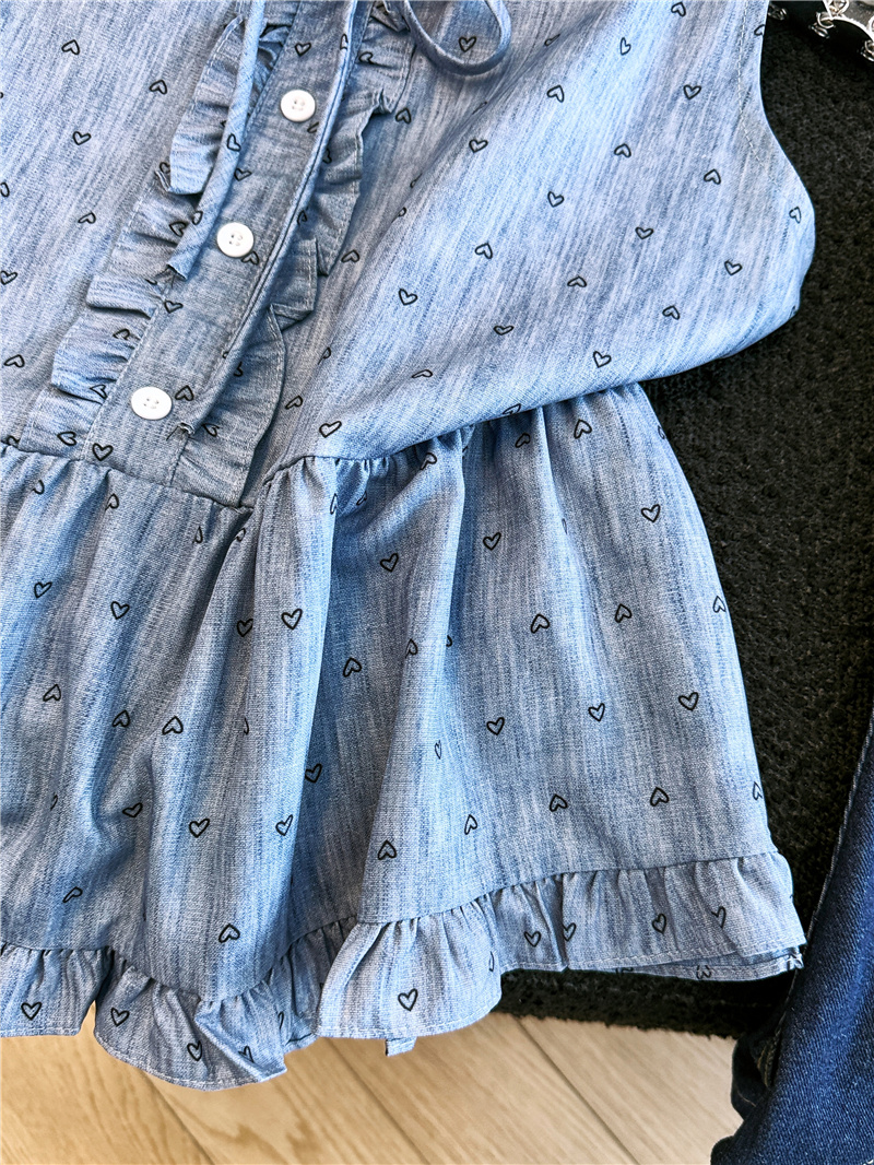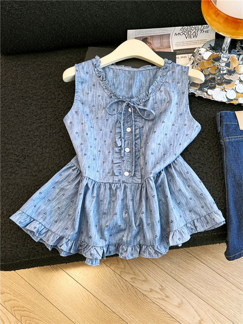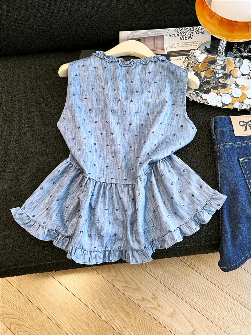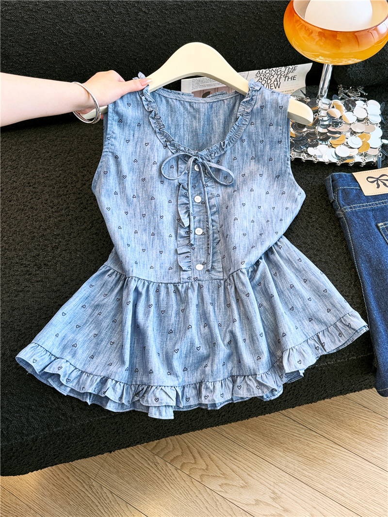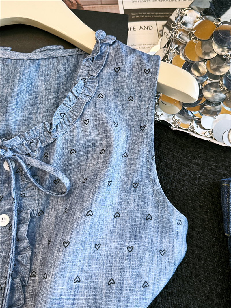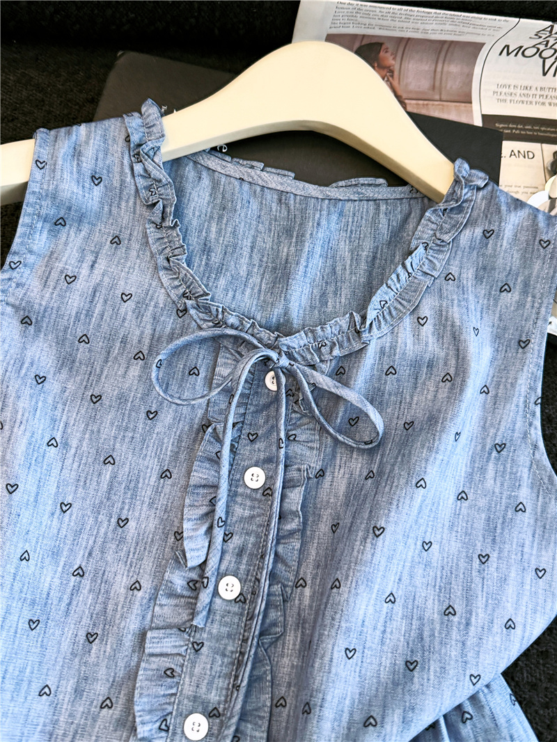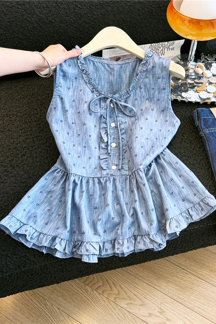 살구 색상 레이스 프릴 프린트 민소매 조끼 여성 여름 새로운 작은 키 루즈핏 슬림해 보이는 품격 맨위 트렌디