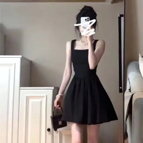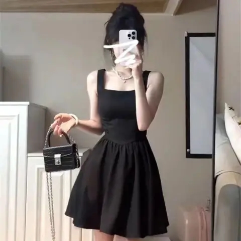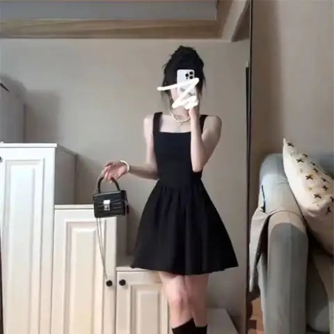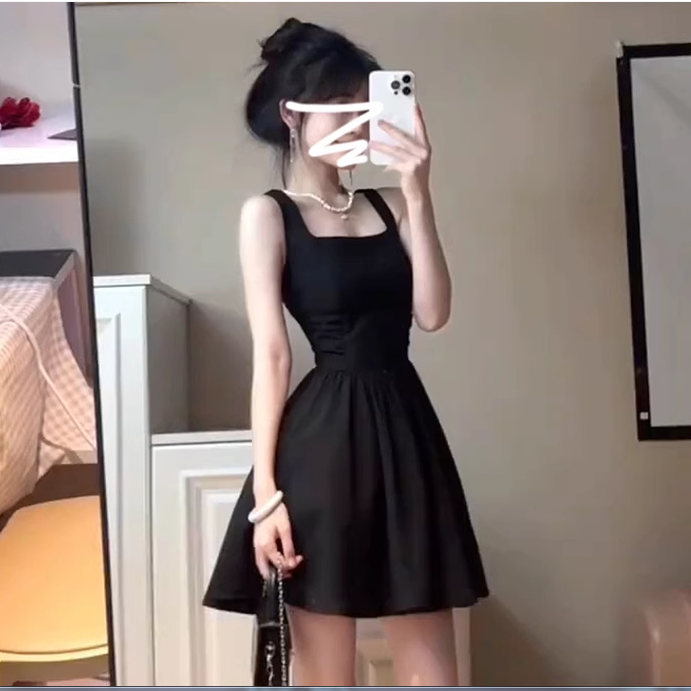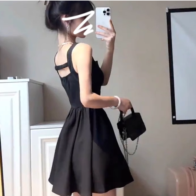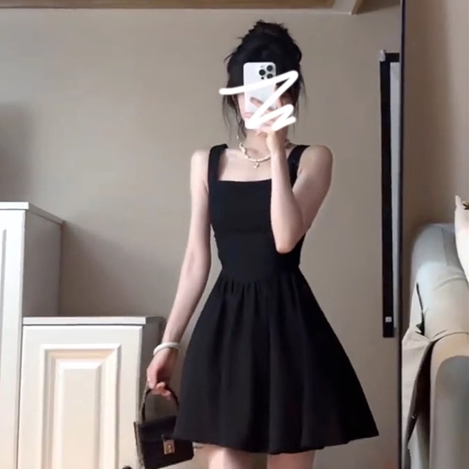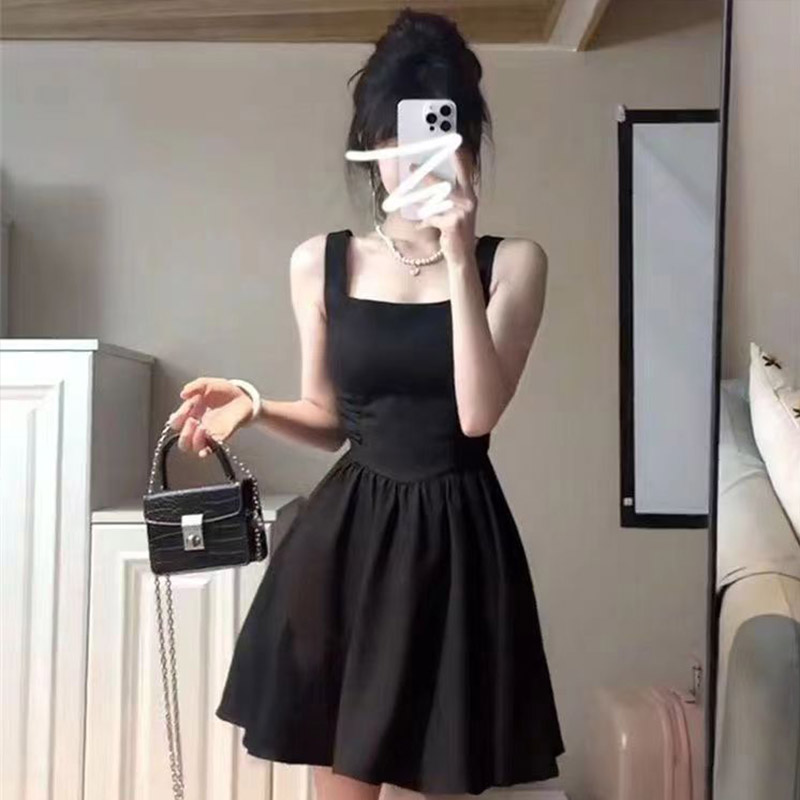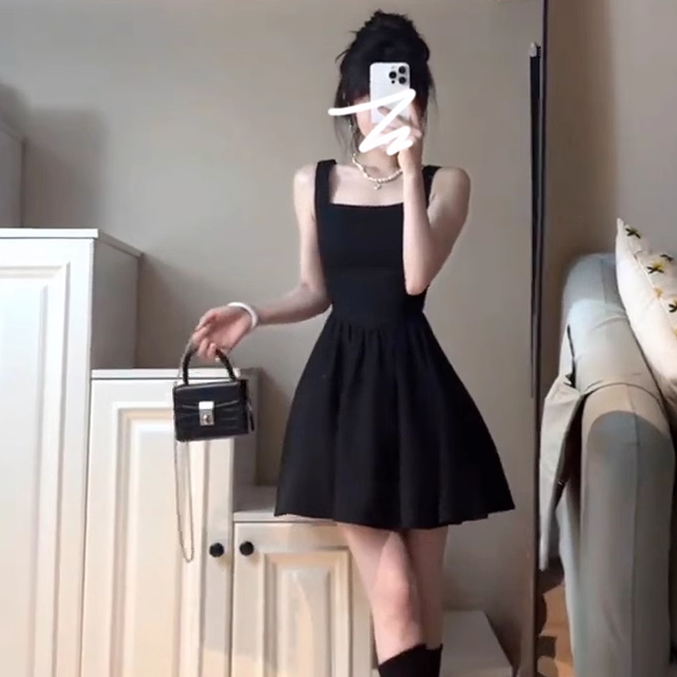 프랑스식 그는 벤 명문 여성 바람 고급 센스 검정색 슬립 여성 드레스 작은 키 봄 허리 수축 슬림해 보이는 짧은 치마