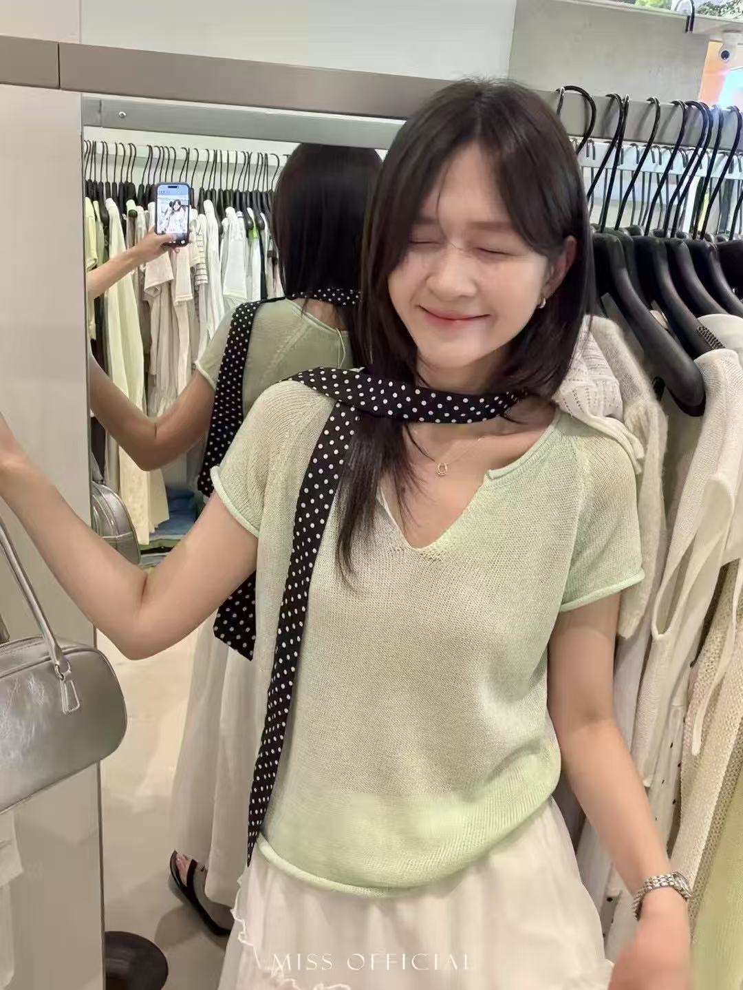 2026 봄 새로운 한 부서 루즈핏 슬림해 보이는 라운드 넥 자카드 라이 경기 서울 주간 실크 니트 반팔 여성 다용도 맨위