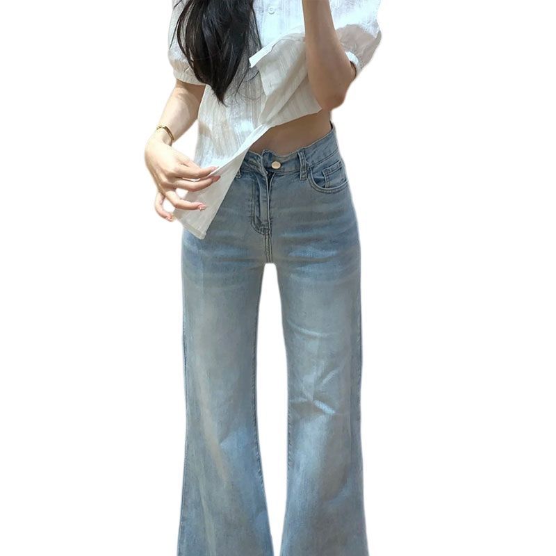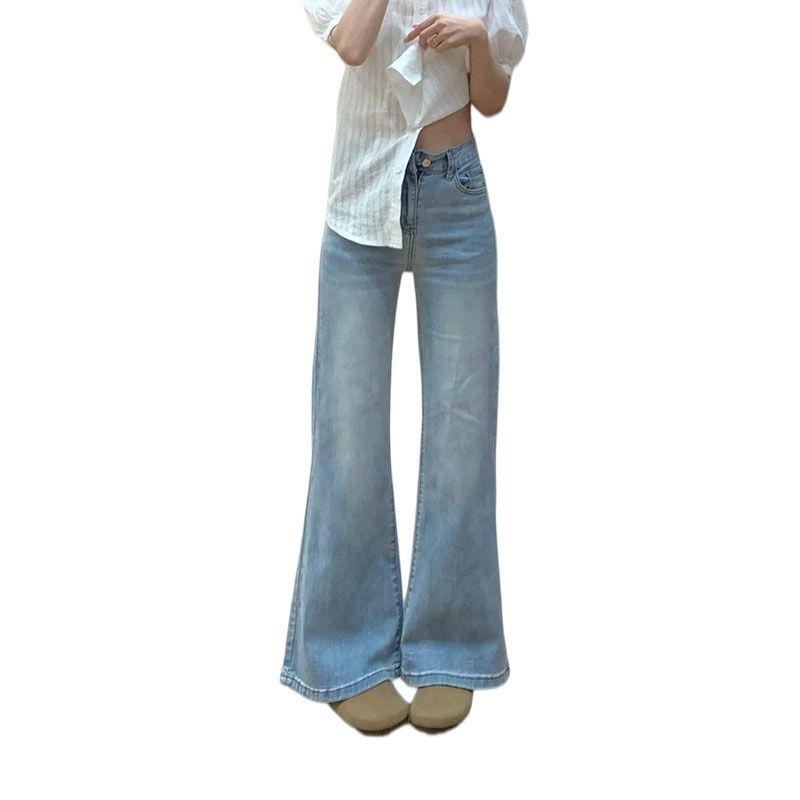 항구 바람 2026 레트로 품격 부츠컷 청바지 하늘색 부드럽다 도루 가을 ins 바람 작은 대중 착용 가져 가라. 슬림해 보이는 하느님 바지