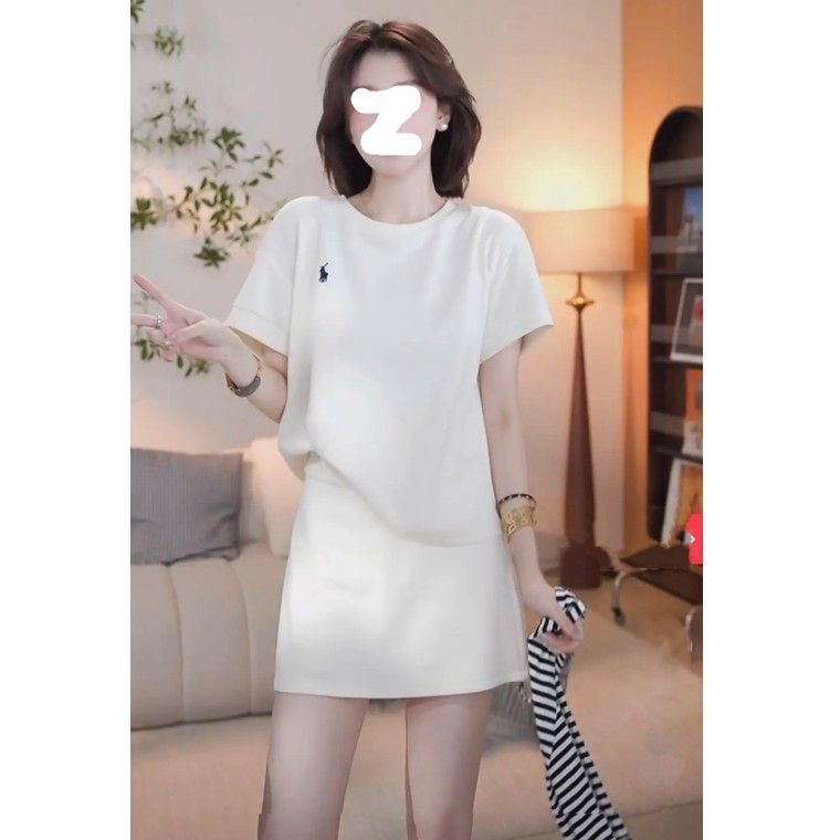 유럽 상품 캐주얼 패션 스포츠 슈트 여성 여름 루즈핏 작은 말 자수 반팔 티셔츠 반신 미니 스커트 3종 세트