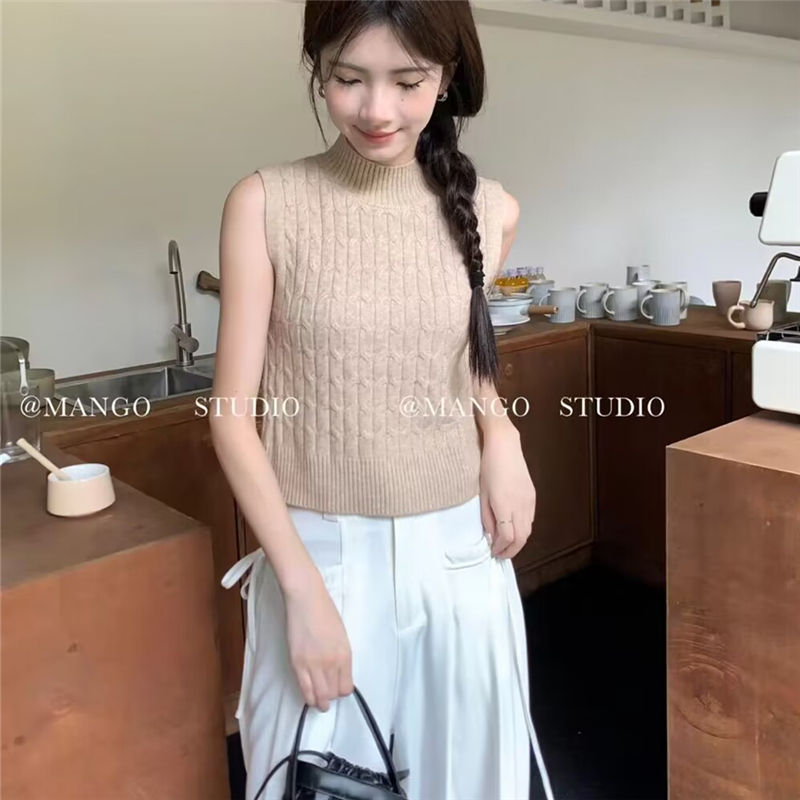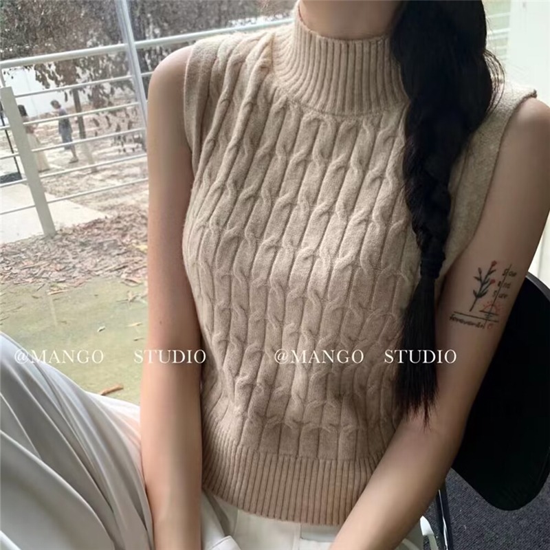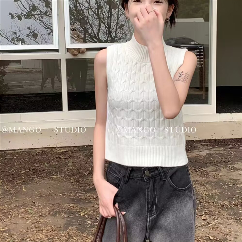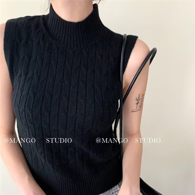 풀오버 반하이넥 기본 셔츠 여성 다용도 슬림해 보이는 한국 스타일 몸매 가꾸기 민소매 니트 스웨터 스웨터 맨위 패키지 코어 실