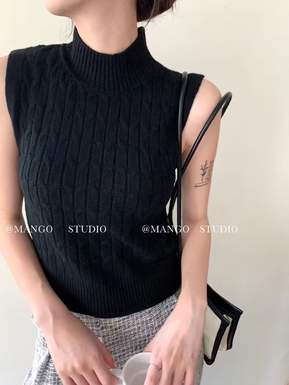 반하이넥 만나는 조끼 여성 새로운 인사이드 가져 가라. 섹시함 몸매 가꾸기 가을 겨울 민소매 니트 홀로우 아웃 맨위 얼음 차가운 실크