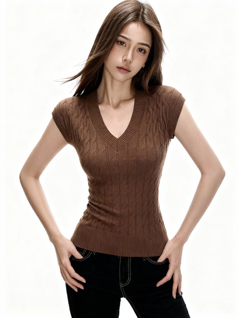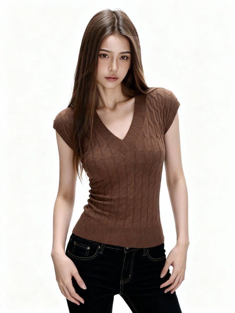 아메리칸 레트로 V넥 니트 반팔 티셔츠 여성 2026 여름 새로운 핫걸 몸매 가꾸기 맨위