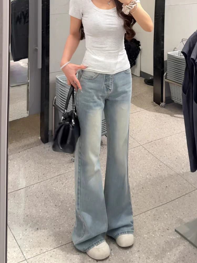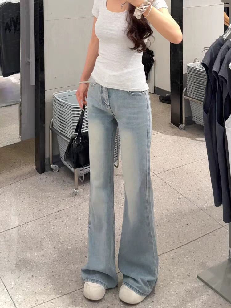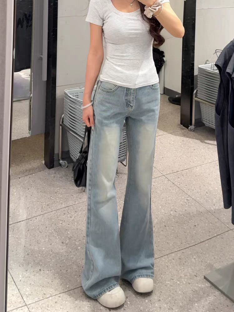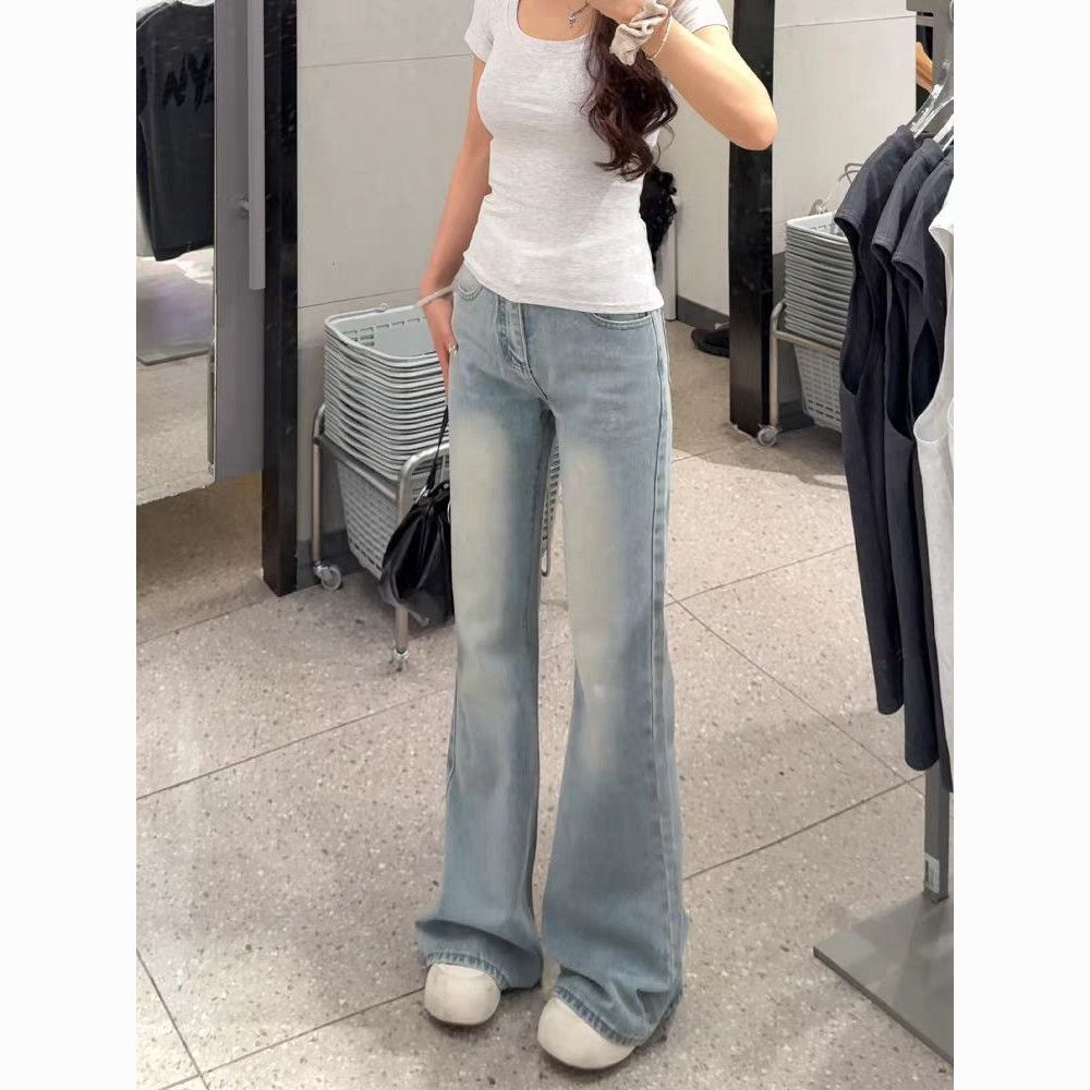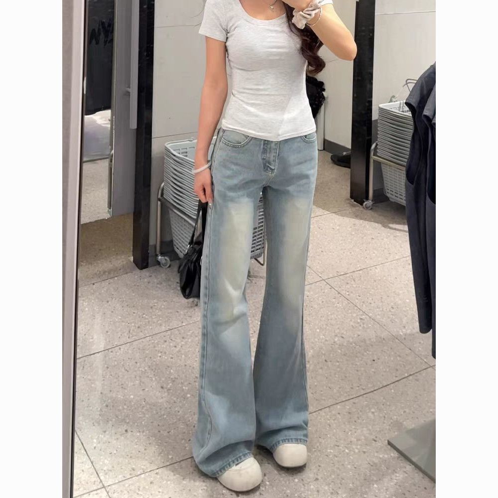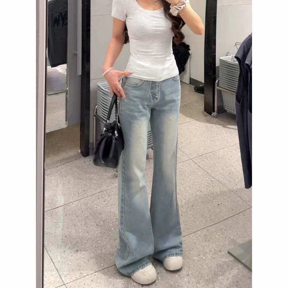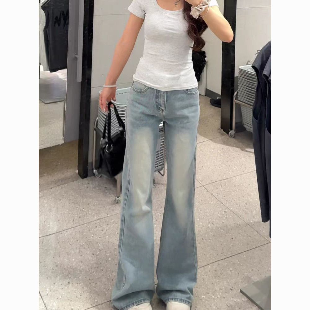 아메리칸 아니요 막대기 다리 부츠컷 청바지 여성 2026 봄 여름 새로운 로우 웨이스트 루즈핏 슬림해 보이는 도루 센스 바닥 청소 나팔 바지