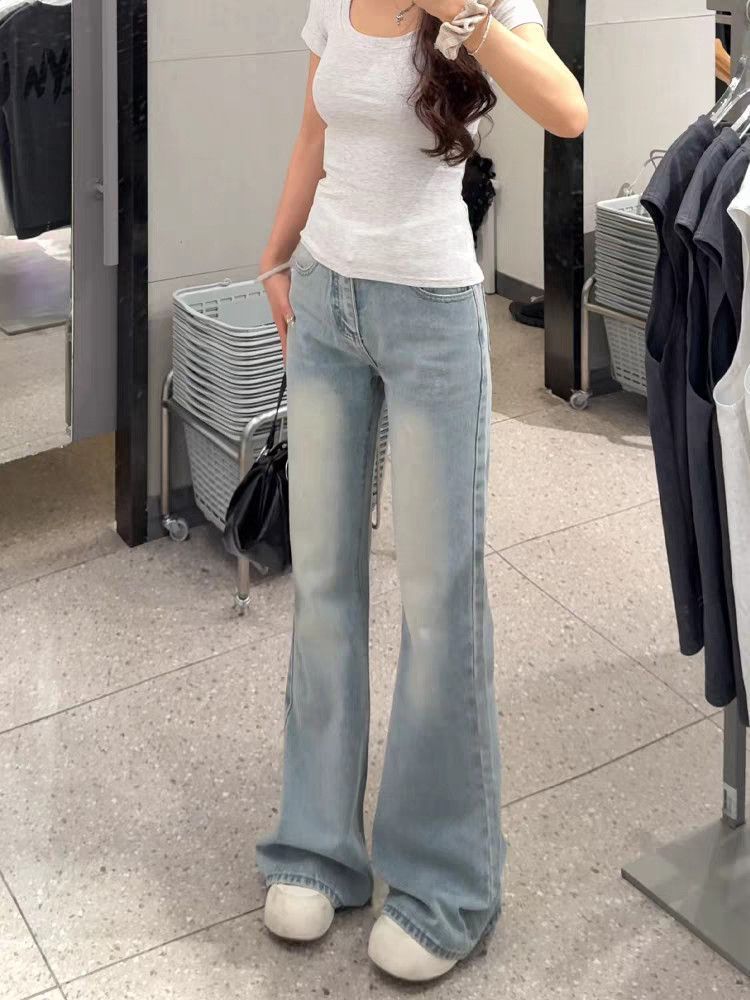 항구 바람 2026 레트로 품격 부츠컷 청바지 하늘색 부드럽다 도루 가을 ins 바람 작은 대중 착용 가져 가라. 슬림해 보이는 하느님 바지