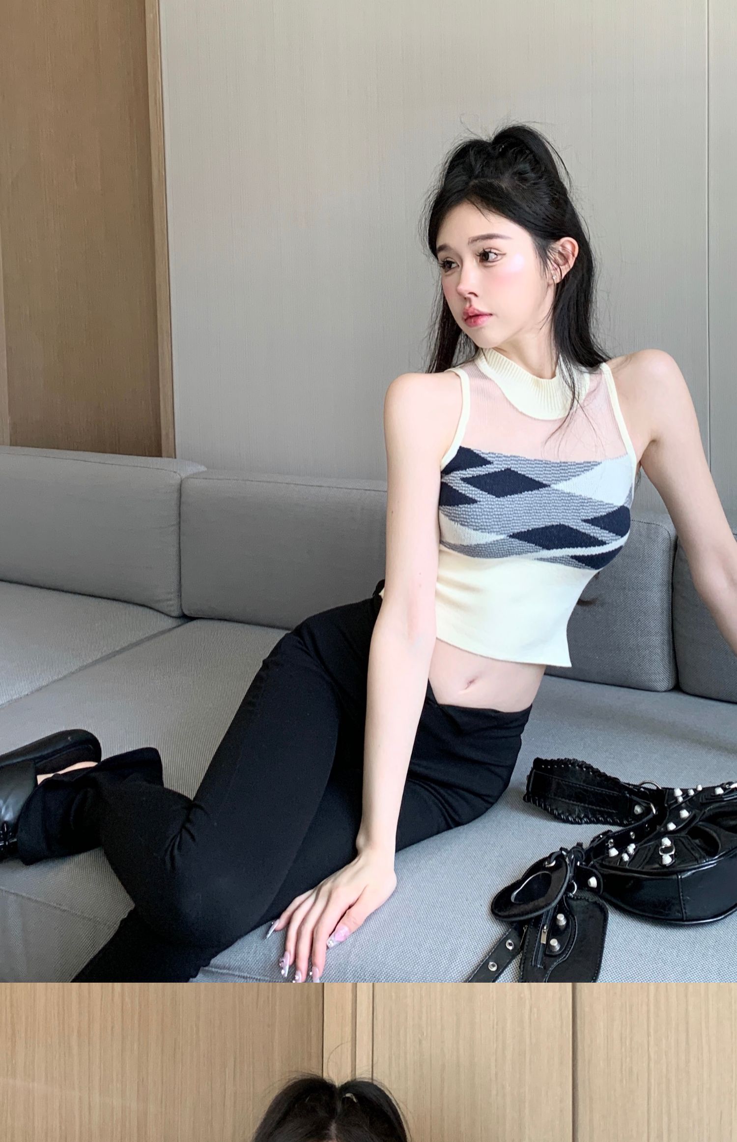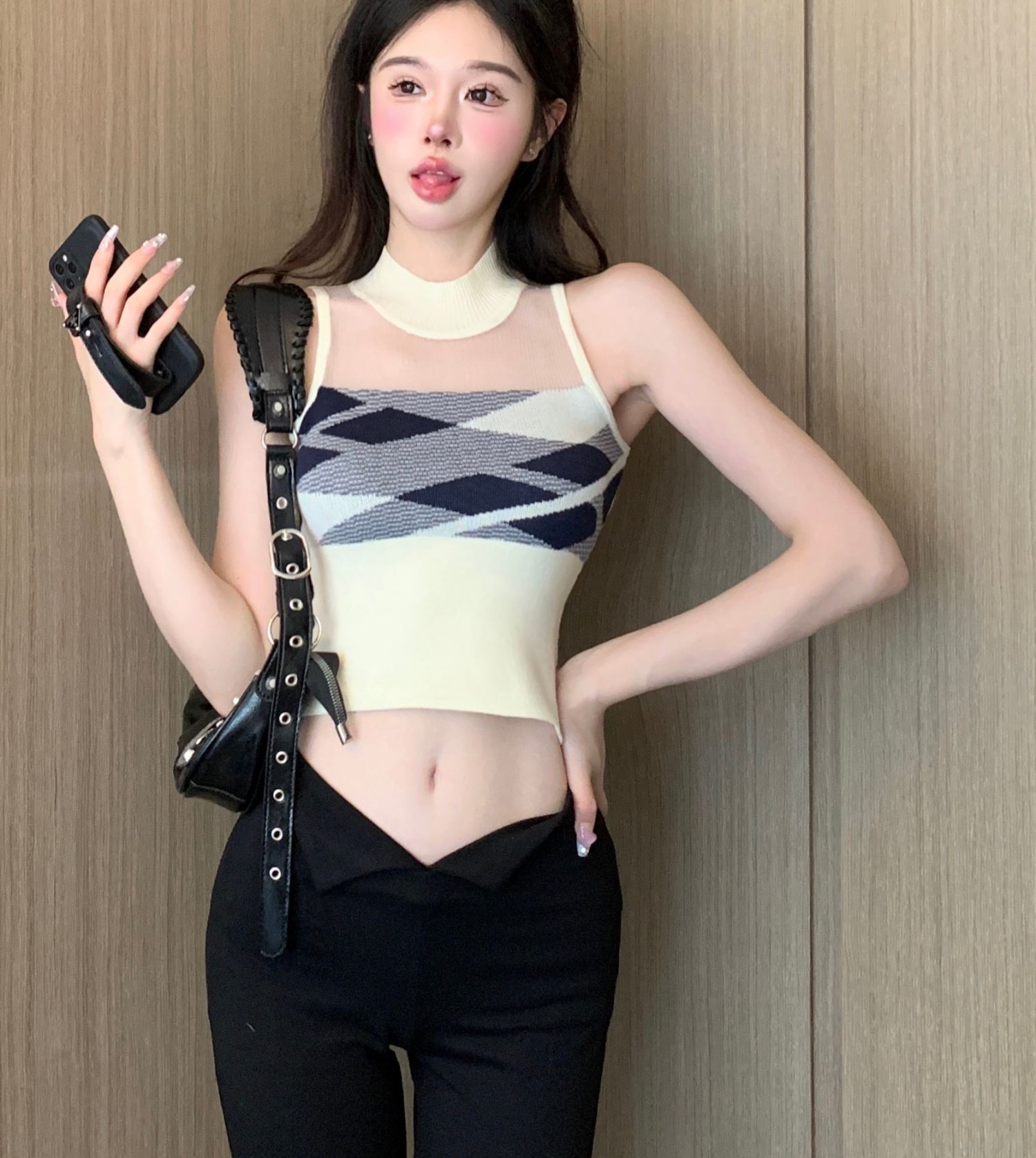 반하이넥 만나는 조끼 여성 새로운 인사이드 가져 가라. 섹시함 몸매 가꾸기 가을 겨울 민소매 니트 홀로우 아웃 맨위 얼음 차가운 실크