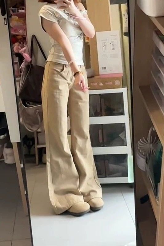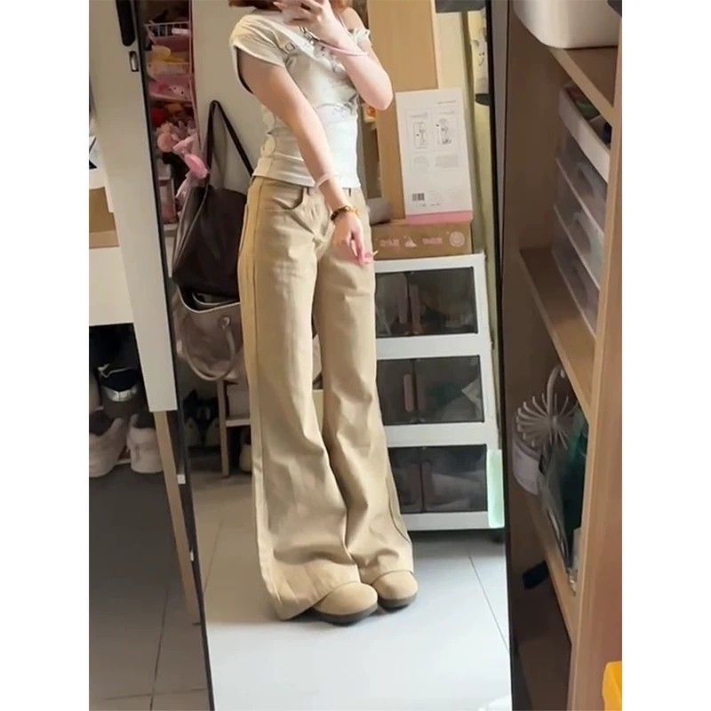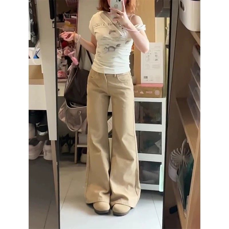 아메리칸 아니요 막대기 다리 부츠컷 청바지 여성 2026 봄 여름 새로운 로우 웨이스트 루즈핏 슬림해 보이는 도루 센스 바닥 청소 나팔 바지