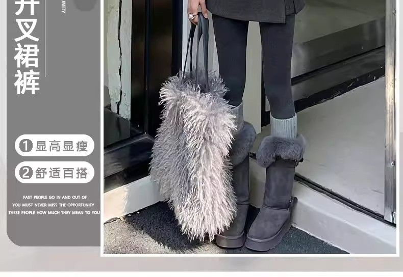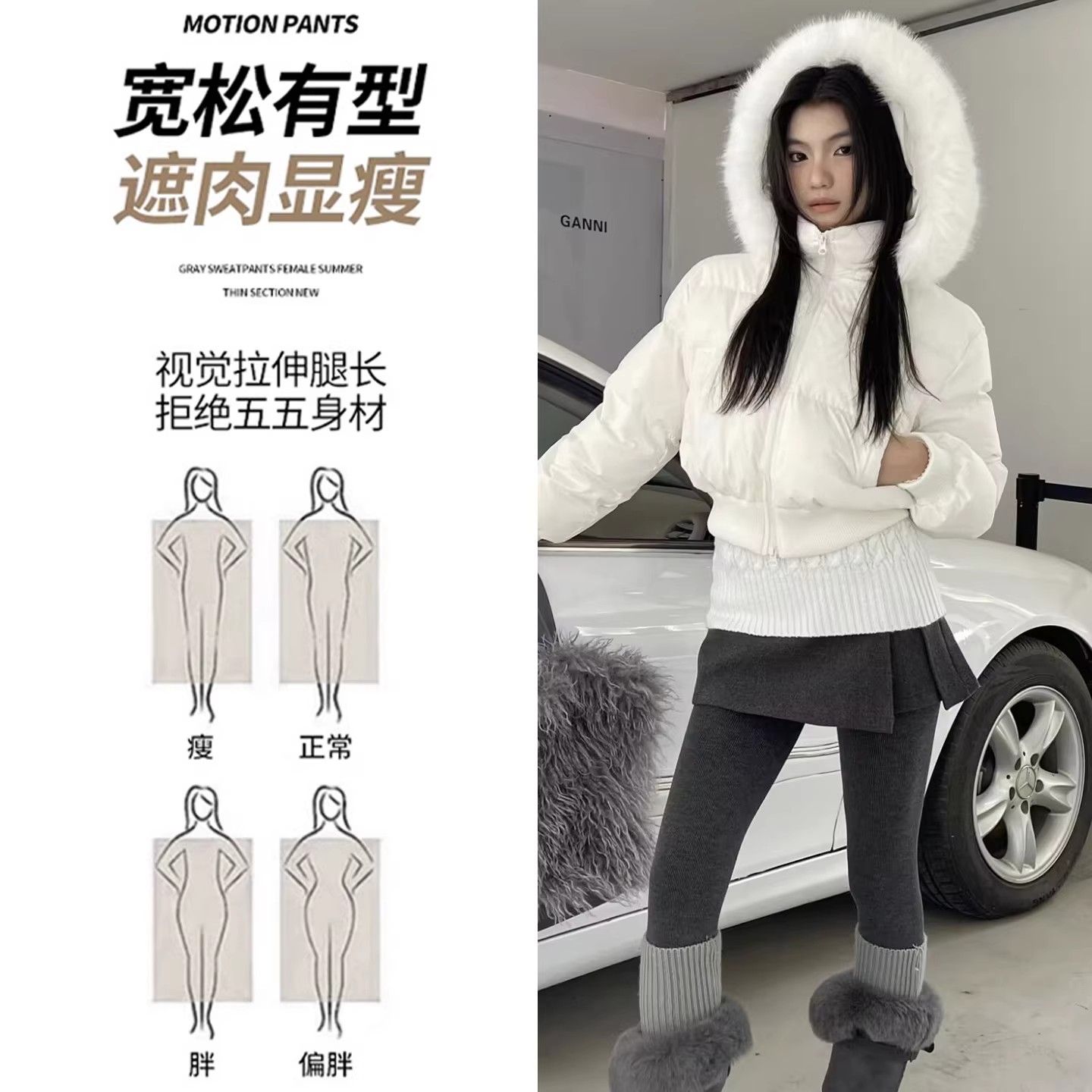 니트 반바지 여성 가을 겨울 2025 새로운 하이웨이스트 슬림해 보이는 털실 바지 보온 털이 있는 외출용 한 마디 핫 바지