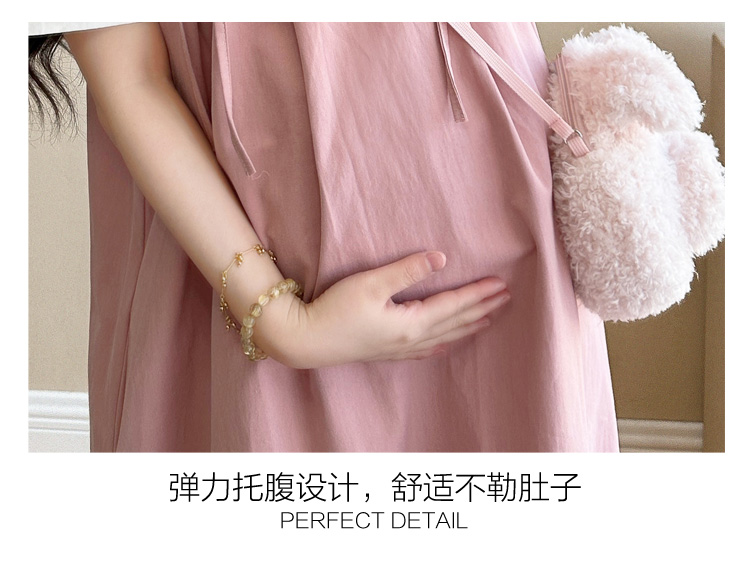 실사 2026 새로운 임산부 여름 드레스 한국 스타일 연령 감소 니트 임산부 드레스 루즈핏 빅 사이즈 게으른 출산 스커트