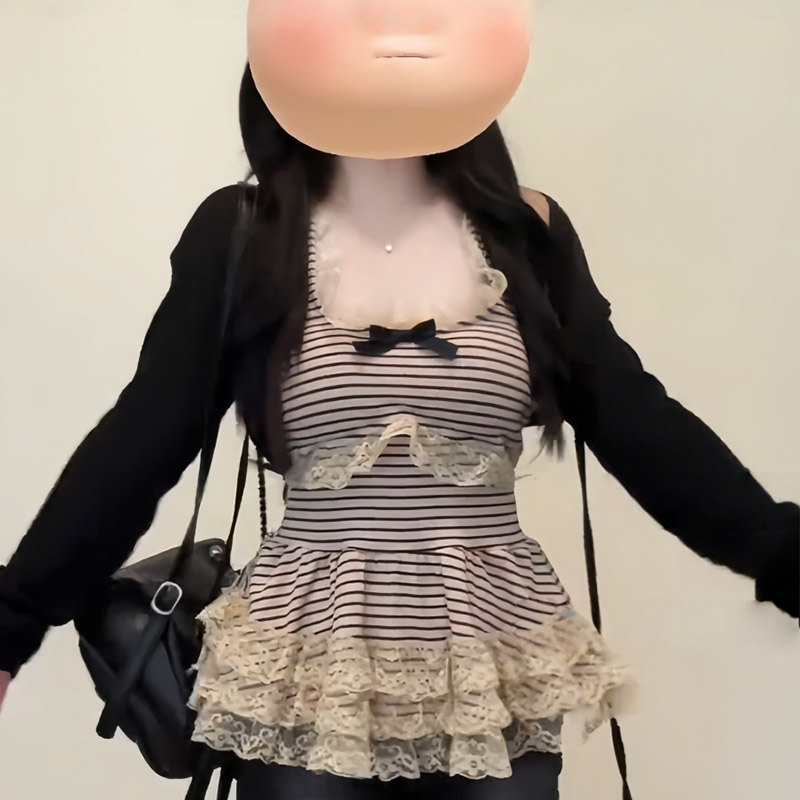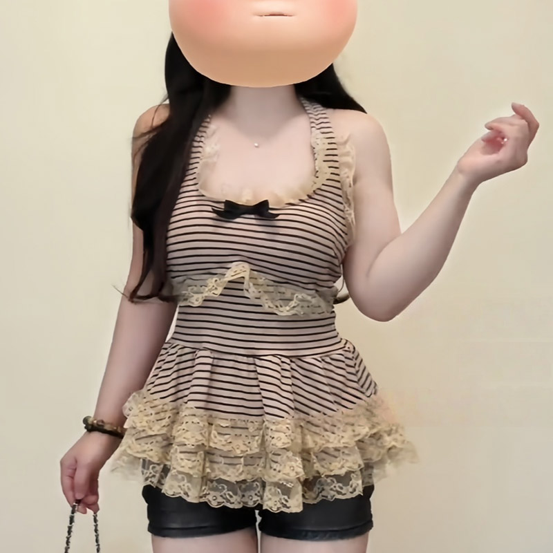 경관 그림 정가 한 부서 작은 레이스 V넥 캐미솔 여름 몸매 가꾸기 슬림해 보이는 다용도 품격 맨위